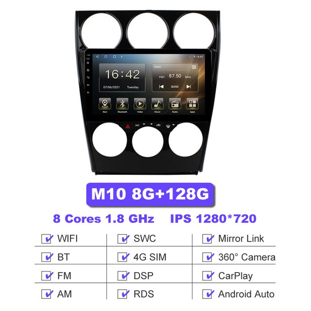 omnitek For Mazda 6 2002-2008 9/10.1 Inch HD 2 Din Android 10 Car Radio Multimedia Video Player Universal Auto Stereo