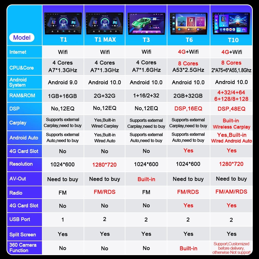 9/10 inch Android 11.0 HD digital touch screen 1. Android 11.0 operating system 2. Support 1080P+ support lossless music 3. Support steering wheel control (if your car has it) 4. Support Phone Link (AirPlay, Miracast) 5. Output: 4x50W max Power output/5.1 channel lossless audio output 6.Audio Frequency: 7 EQ balanced audio processing technology 7.OSD language: English/Russian/French/German/Spanish/Italian/Arabic/Portuguese/Turkish/Thai/ More than 20 languages such as Polish/Hebrew 8. Automatically display rear view camera image when reversing 9. Support media card/GPS card/USB memory stick up to 32GB SD card and 1T hard disk 10. Audio model: Classic/Rock/ Pop/Hall Cinema 11. Music spectrum: display music spectrum when playing audio 12. Audio format: MP3/ WMA/ FLAC/ APE/ ACC etc. 13. Picture format: JPG/ BMP/ GIF/ PNG etc. 14. Video format: H264/ MP4/ AVI/ RMVB/ FLV/ MKV/ MOV, etc. 15.WiFi: Built-in WiFi and antenna 16.Car Door Info: Display the status of the door switch (the original car has this function) 17.Rotating Speed: Display the speed on the screen 18. Running Speed: Display the running speed or engine on the screen 19. Rear view camera: For cars without original camera 20. Support the latest phonebook search, you can search and find contacts in the downloaded phonebook, just enter the name The first letter, you will find some related names, then you can choose the suitable one 21.Radio Tuner with RDS, 30 Preset Radio Stations (FM: 3*6, AM: 2*6) 22.USB port and Micro SD slot, support USB stick and memory card up to 32GB 23.Parking Sensor: Suitable for cars without original parking sensor 24.TPMS: USB TPMS for Android car GPS 25.Support steering wheel control function Support steering wheel control function