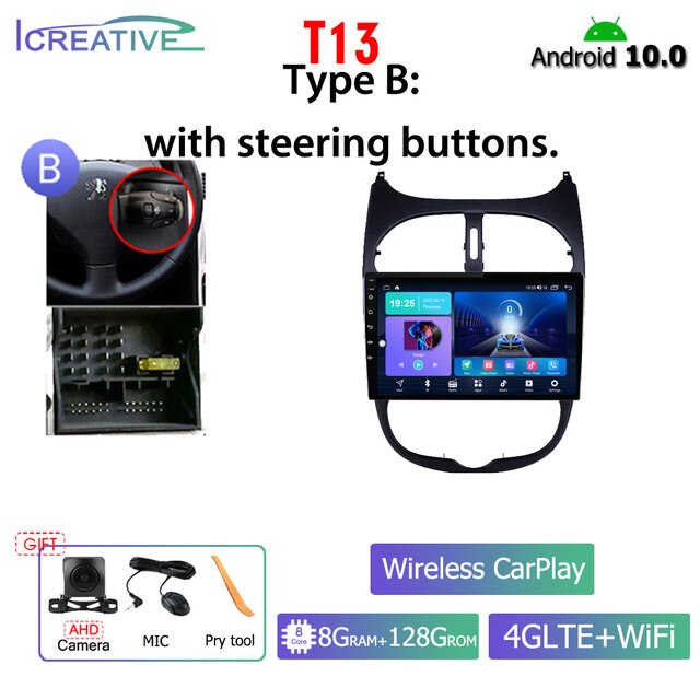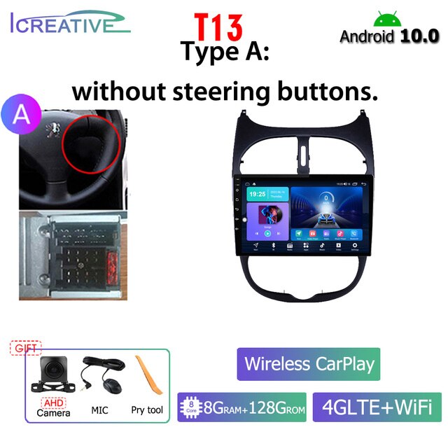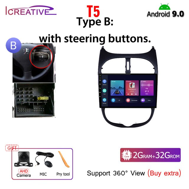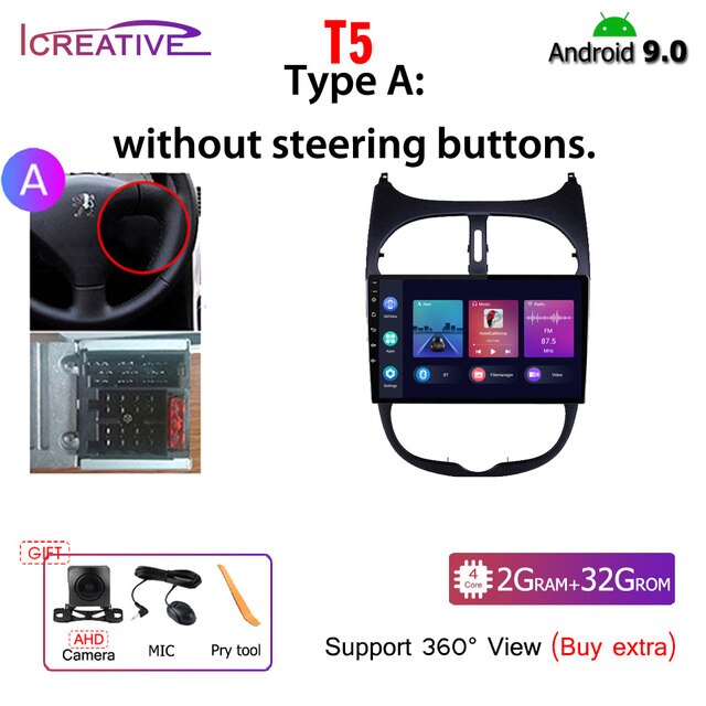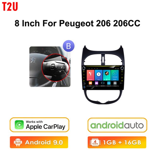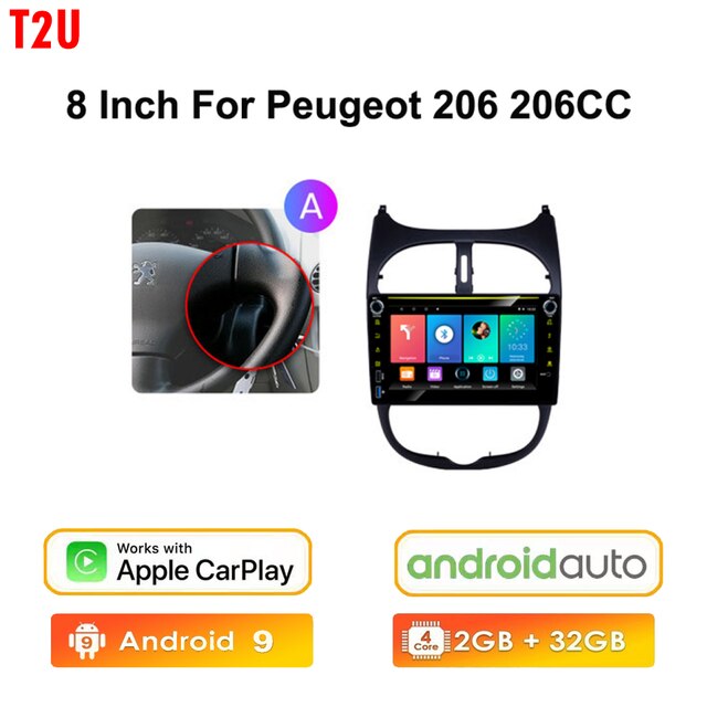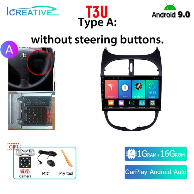 2 din Car Radio Android: For Peugeot 206 2000 -2016