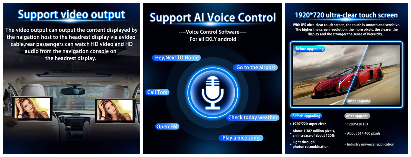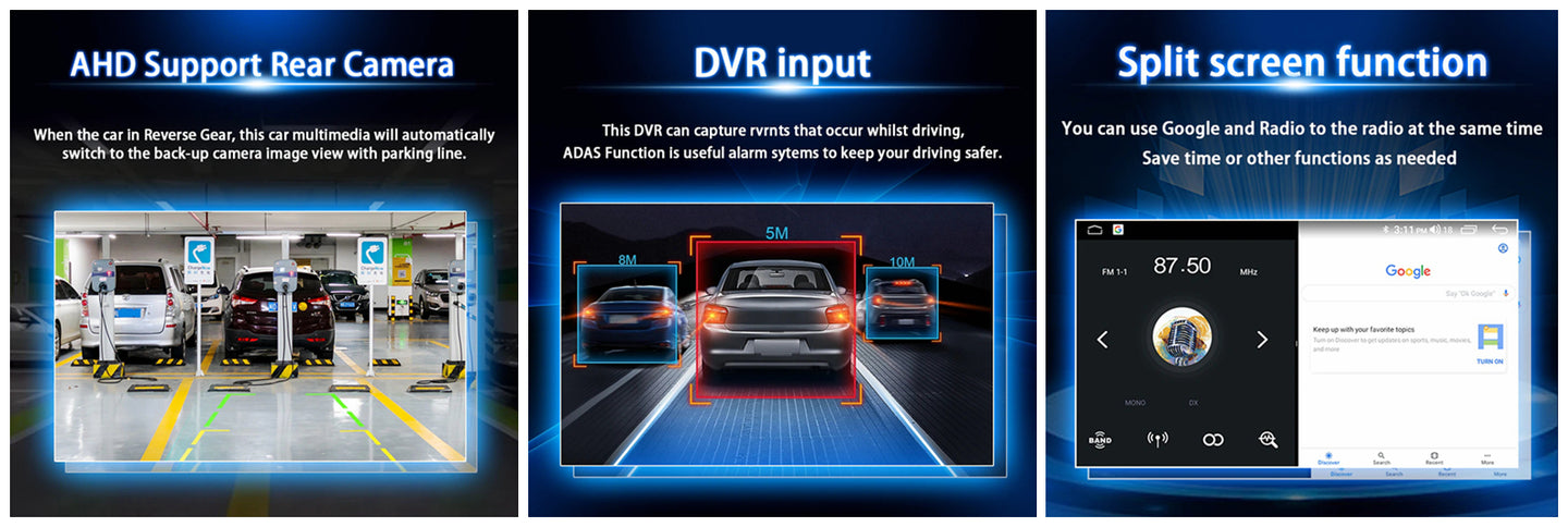 Main features: CPU chip: Quad core / Octa Core RAM+ROM : 1G+16G / 2G+32G /4+64GB / 6+128GB Android 11GO system Media format: AVI ASF MKV . FLV .RMVB WMV RM MP3 MP4 MOV MPEG VOB More formats support You can download other players in the Google Store. 9-inch 1280*720 high-definition digital display Pre-installed maps: Google online maps or other popular maps (About 1GB-6GB of system memory) Optional built-in1G DDR3 16Gflash/ 2G DDR3 32Gflash/ 4G DDR3 64Gflash Built-in WiFi module that supports WiFi connection to the Internet. Support for rear view camera input Integrated amplifier 4x45 W.4x50 W. Radio FM frequency range: 87.5-108 MHz Two rear USB input connectors It supports steering wheel control (or you can choose the Bluetooth steering wheel remote control) Rear video input/output 2 CH after RCA input 2-channel rear audio output 1 channel video output It supports smartphone connection, mirror link, dual control Full screen capacitive touch screen control Bluetooth 5.0 built-in, hands-free, phone book, music It supports A2DP Steam music playback from mobile to radio OSD language: English, Russian, German, French, Italian, Spanish, Arabic, Hebrew, Japanese, Czech, Portuguese, Romanian, Turkish, Korean Thai, Latvian, Spanish, Italian , Japanese, Chinese (Traditional), Romanian, Hungarian, Chinese (Simplified), Korean, Swedish, Ukrainian, Croatian, Danish, Norwegian, Finnish, Turkish, Filipino, Portuguese, Lithuanian, Poland, Slovakia, the Netherlands and Estonia.Approximately 60 languages are available! Input: DC 12V - 14.4V Support CMMB digital TV (optional) Support USB DVR (optional) Support TMPS (optional) Support OBD (optional) Support DAB + (optional) Package Included: 1 car Android GPS multimedia player 1 X rear camera (optional) 2 X USB cable 1 XGPS antenna 1 RCA cable 1XUser Manual10” HD TOUCH SCREEN UNIT: This car GPS player system features a touchscreen, multi color LCD display to make watching videos and listening to music more fun and convenient. This single din head unit receiver allows you to have full control over your car's music or visual entertainment. CARPLAY & ANDROID AUTO: This bluetooth car stereo compatible with Carplay and Android Auto. Simply connect the phone via USB cable. You can access map navigation, phone contacts, email, notification, music, video and more when driving. You can also use voice assistant for hands-free control and safer driving. Note: the car stereo mp5 player is not a GPS unit, it gets GPS navigation function by connecting to the phone. HANDS FREE OPERATION: This single din car radio features Bluetooth connectivity for wireless audio streaming. It also has hands free call answering ability along with a built in microphone to allow you to answer calls without taking your hands from the wheel. At the same time, 1din stereo also supports Bluetooth music, allowing you to listen to music and enjoy the driving process. REAR CAMERA SUPPORT: This touch screen car radio supports rear view camera so that you can easily control the vehicle when in reverse and has rear Aux input/output & integrated FM radio so you can access the latest news and traffic information. MULTIPLE CONNECTION TYPES: The in dash car deck console unit features various connection interfaces to allow you to link multimedia devices with ease. Features Aux input & rear panel Aux output connectors. Equipped with FM radio & TF SD Card input.