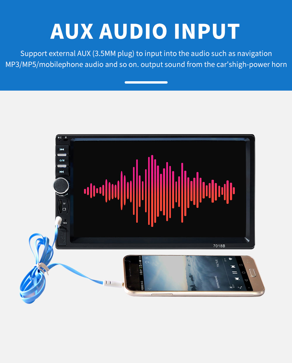 22.AUX audio input interface can be an external MP3, mobile phones, music players and other audio input.