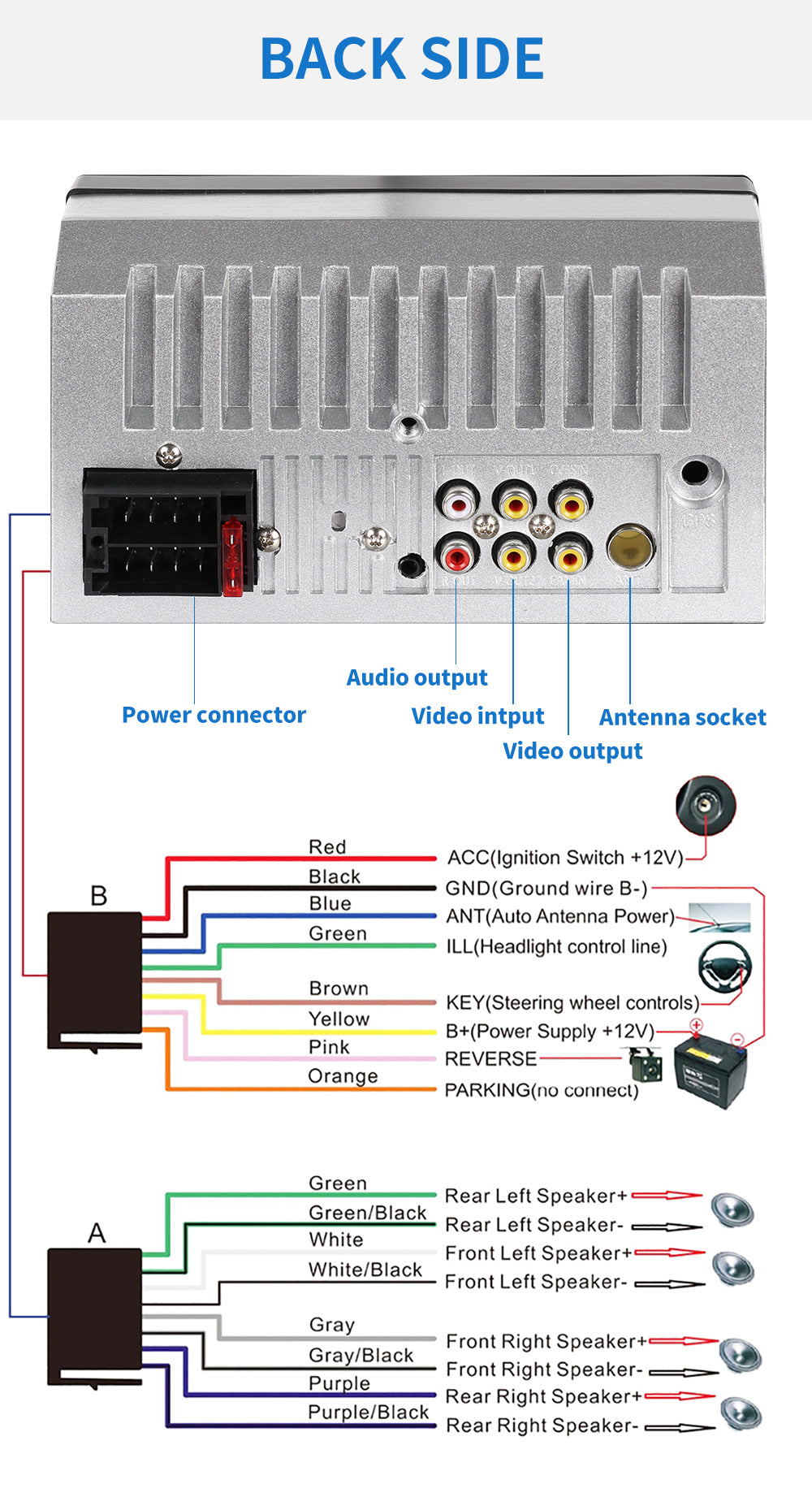 3.Video input,can be connected with rear camera