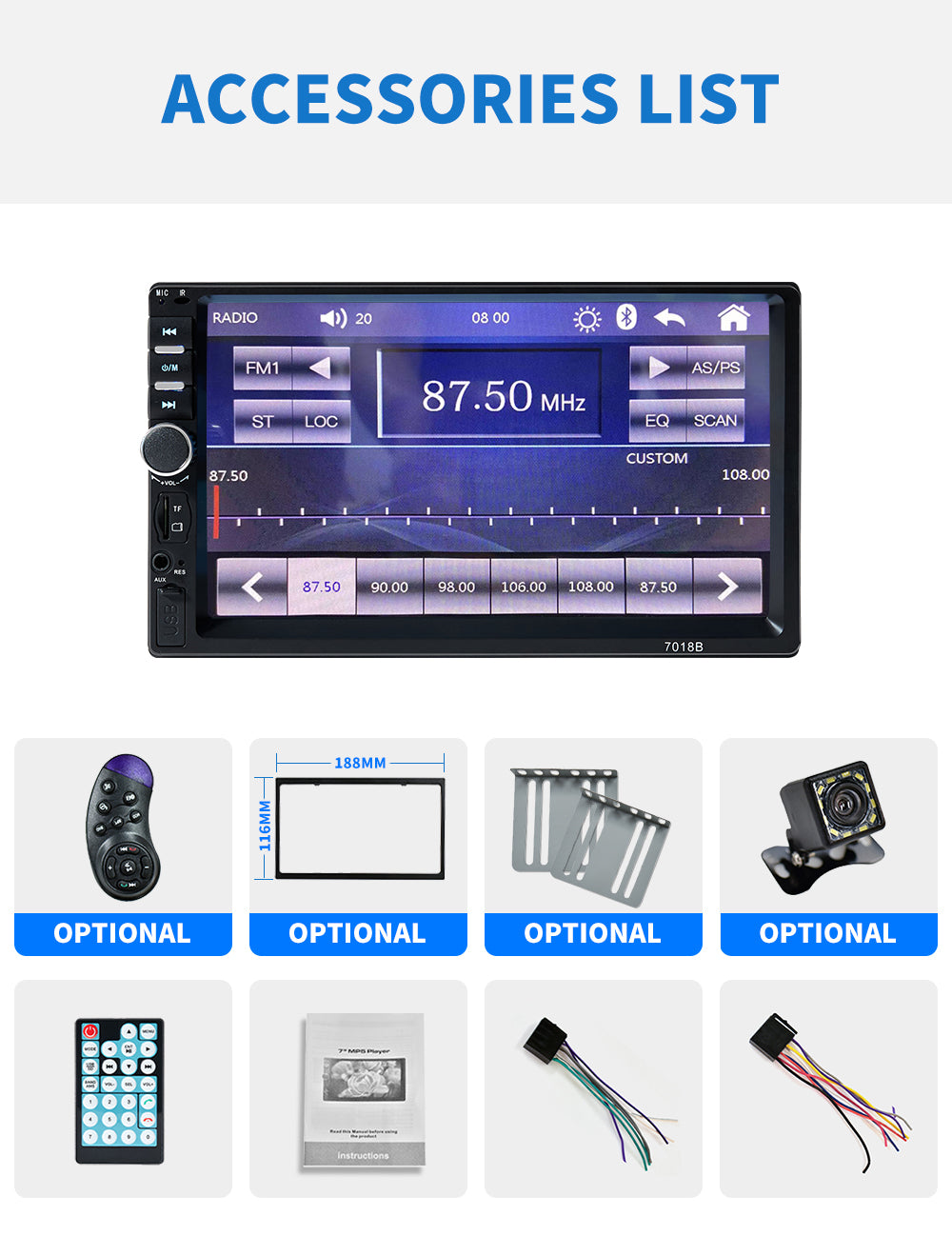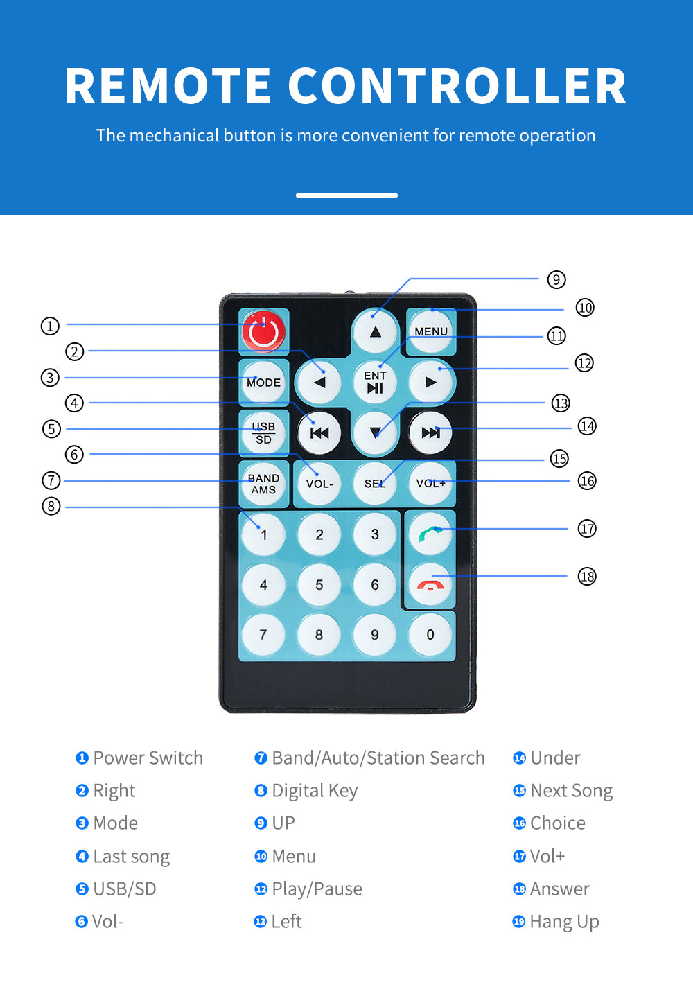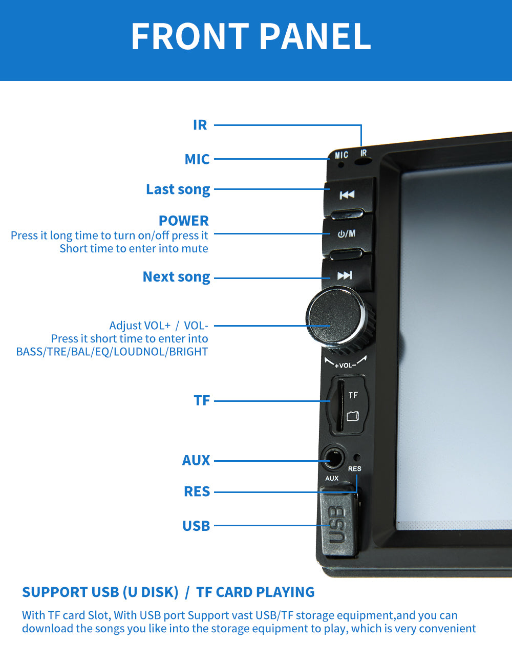 2.Support Bluetooth hands-free calls,bluetooth music player