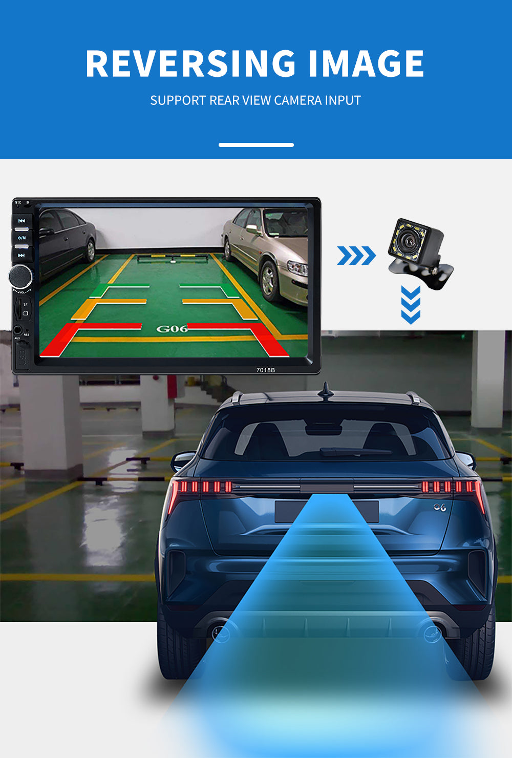 7.Car Parking System Assistance. It will turn into the parking mode automatically, record the traffic.(Rear View Camera Not Included)