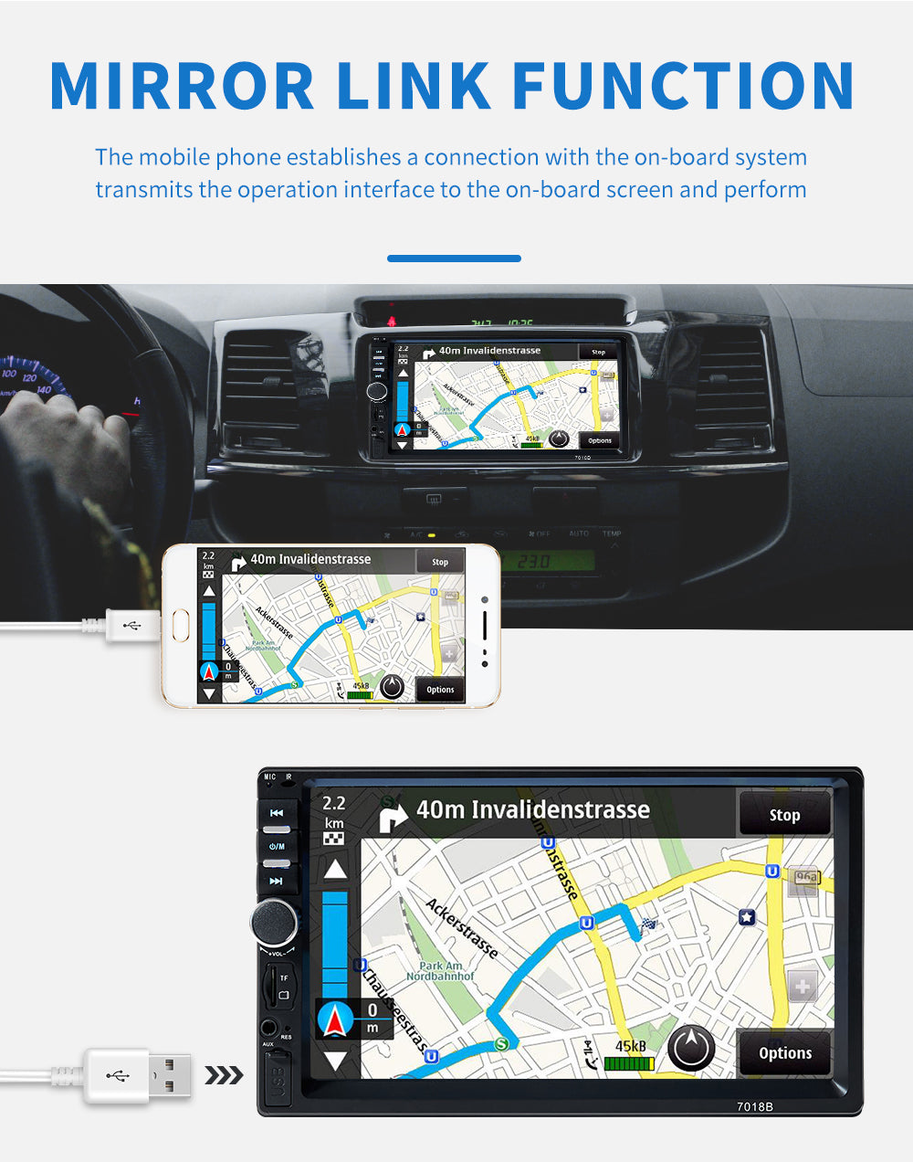 Support mirror link : mobile Internet support Android mobile phone sharing function.As it is very strict with the data cable.Please use the original phone USB cable.(New function)