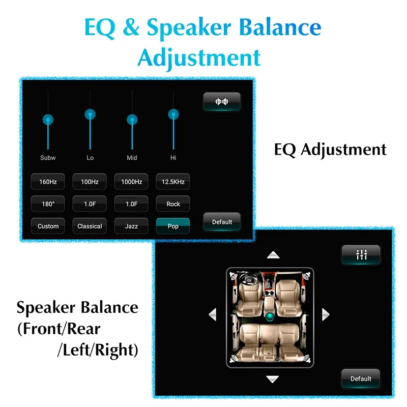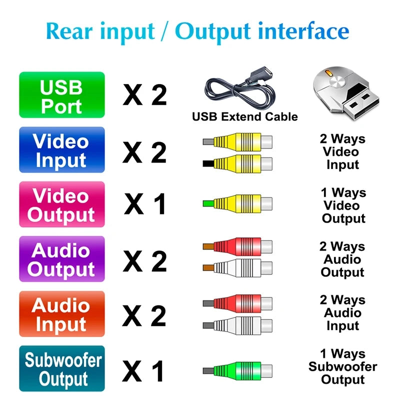 9/10 inch Android 11.0 HD digital touch screen 1. Android 11.0 operating system 2. Support 1080P+ support lossless music 3. Support steering wheel control (if your car has it) 4. Support Phone Link (AirPlay, Miracast) 5. Output: 4x50W max Power output/5.1 channel lossless audio output 6.Audio Frequency: 7 EQ balanced audio processing technology 7.OSD language: English/Russian/French/German/Spanish/Italian/Arabic/Portuguese/Turkish/Thai/ More than 20 languages such as Polish/Hebrew 8. Automatically display rear view camera image when reversing 9. Support media card/GPS card/USB memory stick up to 32GB SD card and 1T hard disk 10. Audio model: Classic/Rock/ Pop/Hall Cinema 11. Music spectrum: display music spectrum when playing audio 12. Audio format: MP3/ WMA/ FLAC/ APE/ ACC etc. 13. Picture format: JPG/ BMP/ GIF/ PNG etc. 14. Video format: H264/ MP4/ AVI/ RMVB/ FLV/ MKV/ MOV, etc. 15.WiFi: Built-in WiFi and antenna 16.Car Door Info: Display the status of the door switch (the original car has this function) 17.Rotating Speed: Display the speed on the screen 18. Running Speed: Display the running speed or engine on the screen 19. Rear view camera: For cars without original camera 20. Support the latest phonebook search, you can search and find contacts in the downloaded phonebook, just enter the name The first letter, you will find some related names, then you can choose the suitable one 21.Radio Tuner with RDS, 30 Preset Radio Stations (FM: 3*6, AM: 2*6) 22.USB port and Micro SD slot, support USB stick and memory card up to 32GB 23.Parking Sensor: Suitable for cars without original parking sensor 24.TPMS: USB TPMS for Android car GPS 25.Support steering wheel control function Support steering wheel control function