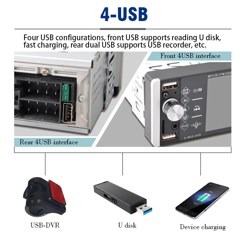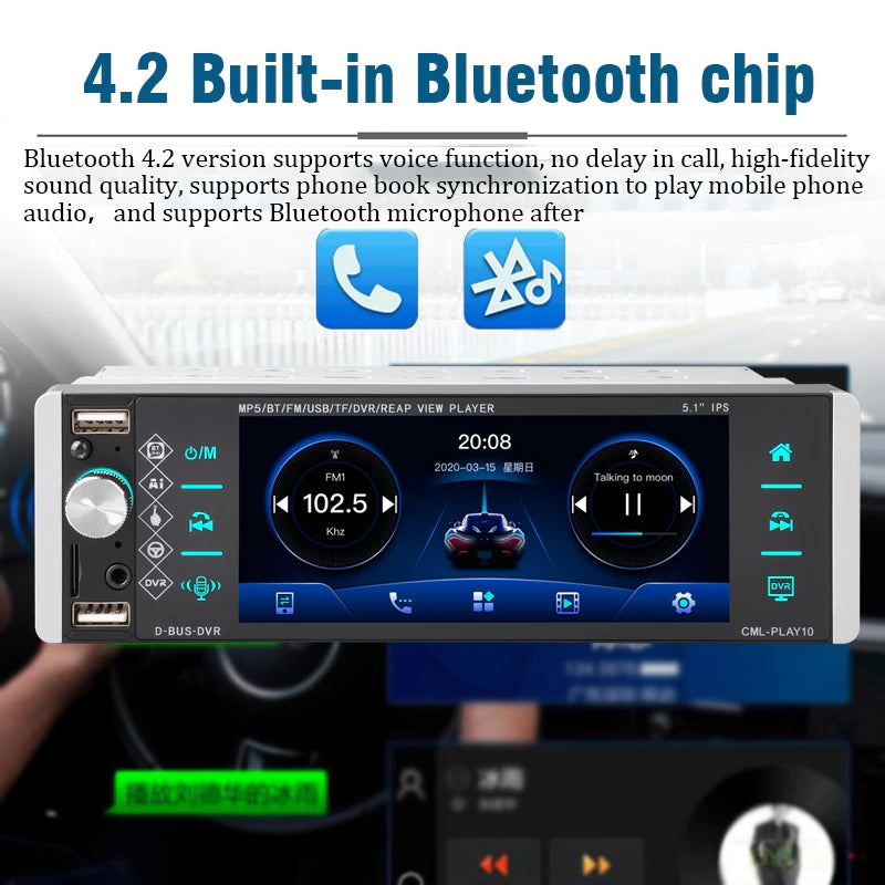 5188 1 din Mp5 Player Touch Car Radio Bidirectional Interconnection RDS AM FM 4-USB 5.1 Inches Support Android 10 Mirrorlink Bluetooth *