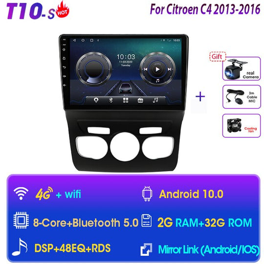 OMNITEK 2 Din Android 10 for Citroen C4 2 B7 2013 2014 2015 2016 Car Radio Multimedia Player GPS Navigation Carplay DVD Head Unit