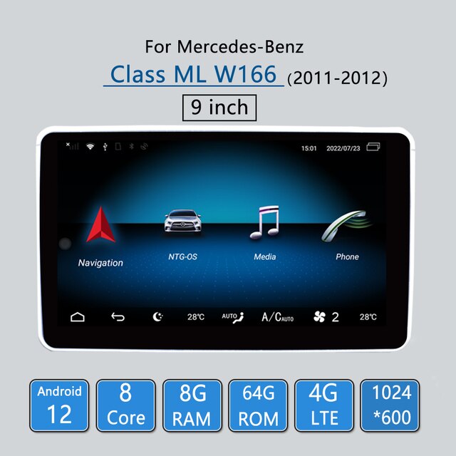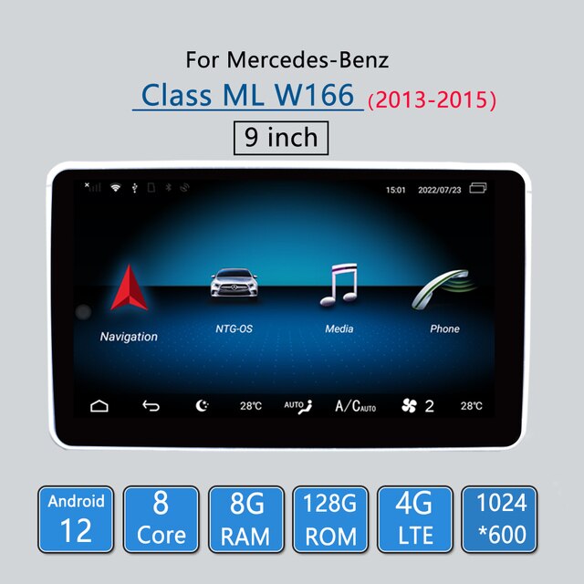 Omnitek For Mercedes Benz Class ML W166 GL X166 GL500 Android 12 Car GPS Navigation CarPlay Apple 2011 2015 DVD Multimedia Playe Screen