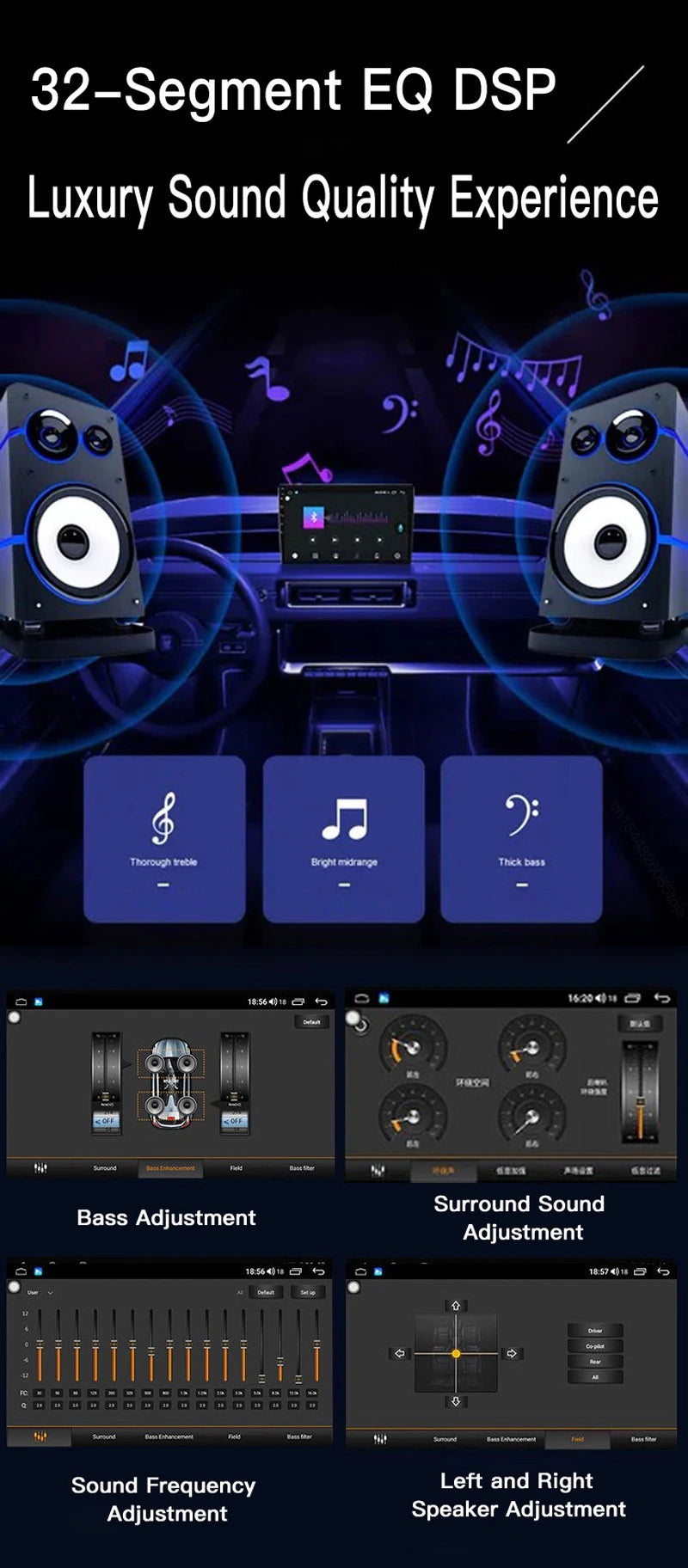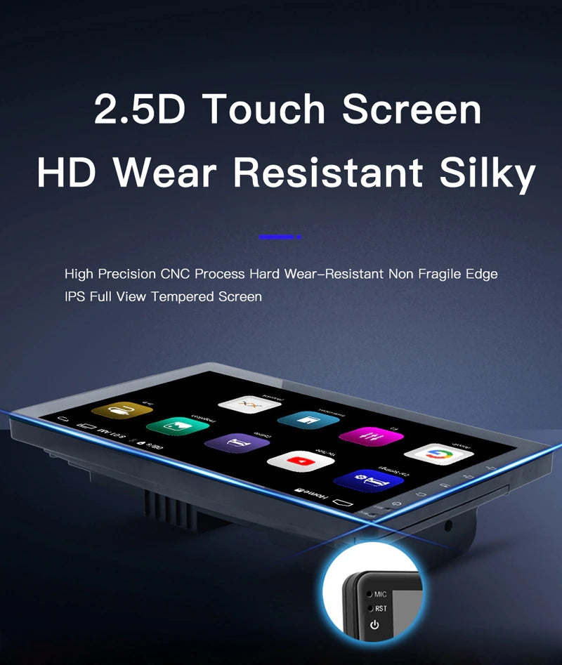 9/10 inch Android 11.0 HD digital touch screen 1. Android 11.0 operating system 2. Support 1080P+ support lossless music 3. Support steering wheel control (if your car has it) 4. Support Phone Link (AirPlay, Miracast) 5. Output: 4x50W max Power output/5.1 channel lossless audio output 6.Audio Frequency: 7 EQ balanced audio processing technology 7.OSD language: English/Russian/French/German/Spanish/Italian/Arabic/Portuguese/Turkish/Thai/ More than 20 languages such as Polish/Hebrew 8. Automatically display rear view camera image when reversing 9. Support media card/GPS card/USB memory stick up to 32GB SD card and 1T hard disk 10. Audio model: Classic/Rock/ Pop/Hall Cinema 11. Music spectrum: display music spectrum when playing audio 12. Audio format: MP3/ WMA/ FLAC/ APE/ ACC etc. 13. Picture format: JPG/ BMP/ GIF/ PNG etc. 14. Video format: H264/ MP4/ AVI/ RMVB/ FLV/ MKV/ MOV, etc. 15.WiFi: Built-in WiFi and antenna 16.Car Door Info: Display the status of the door switch (the original car has this function) 17.Rotating Speed: Display the speed on the screen 18. Running Speed: Display the running speed or engine on the screen 19. Rear view camera: For cars without original camera 20. Support the latest phonebook search, you can search and find contacts in the downloaded phonebook, just enter the name The first letter, you will find some related names, then you can choose the suitable one 21.Radio Tuner with RDS, 30 Preset Radio Stations (FM: 3*6, AM: 2*6) 22.USB port and Micro SD slot, support USB stick and memory card up to 32GB 23.Parking Sensor: Suitable for cars without original parking sensor 24.TPMS: USB TPMS for Android car GPS 25.Support steering wheel control function Support steering wheel control function