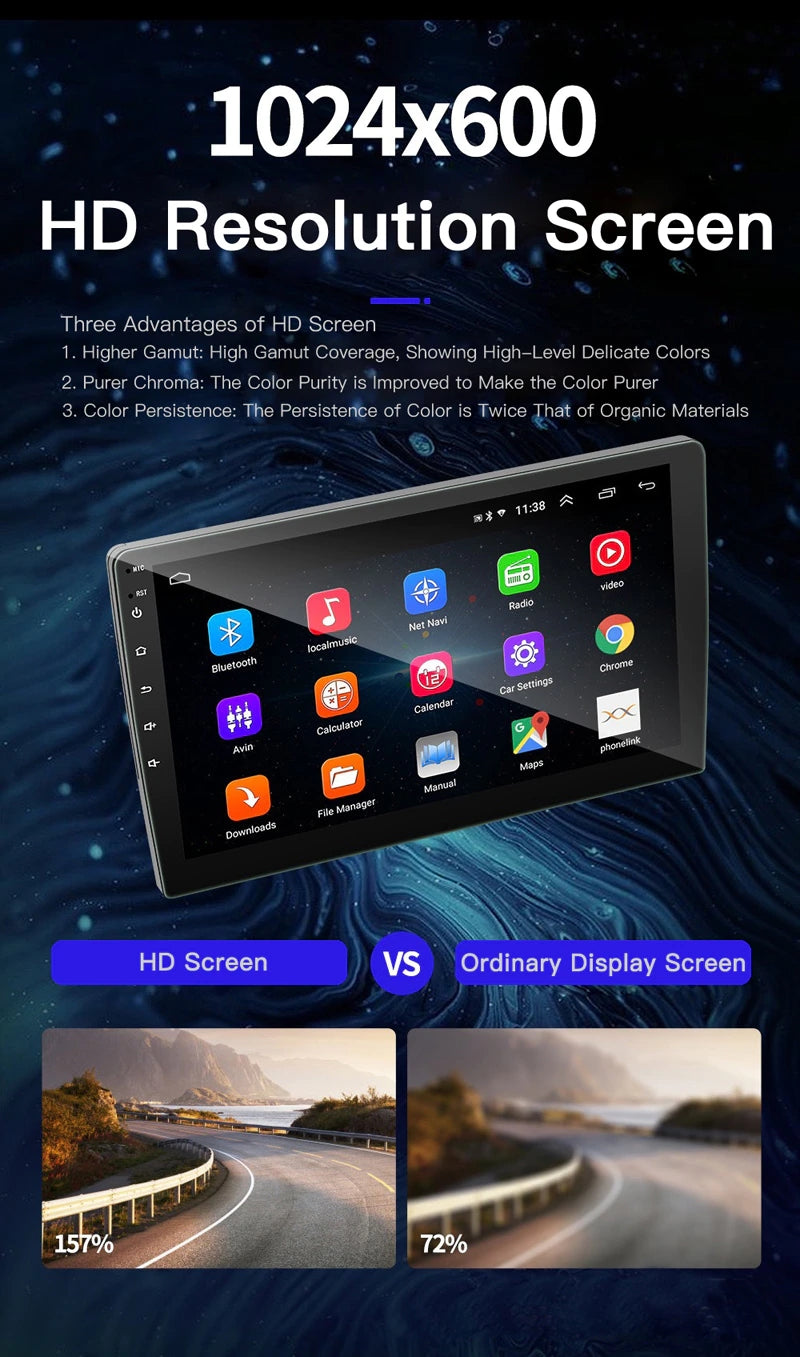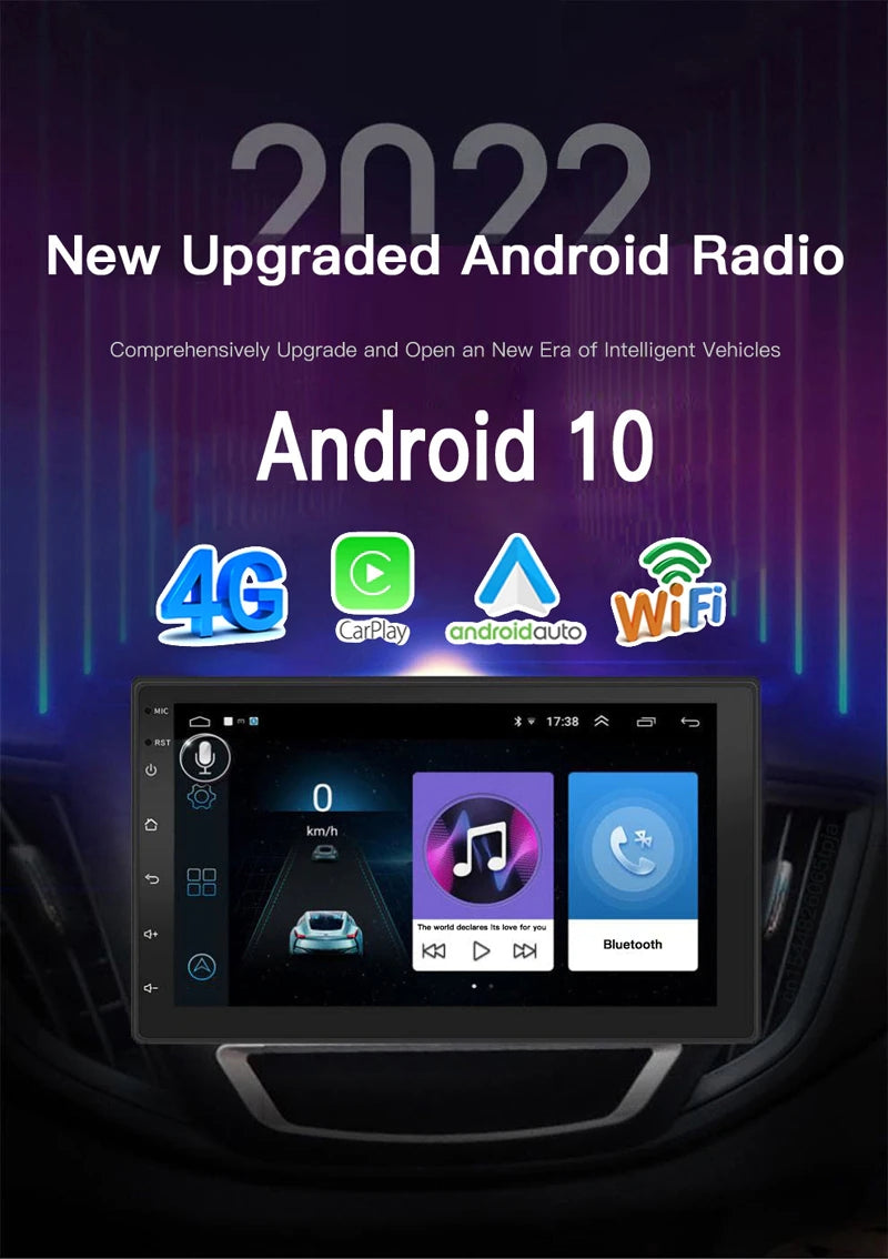 Main features: Operating system: Android10.0 Screen size: 9/10 inch high-definition digital screen Screen resolution 1024*600 Memory: 1GB+ 16GB/2GB+ 32GB/4GB+64GB (optional) Processor: 4-core/8-core output power : 4x50W FM Frequency Range: 87.5-108 MHz, 18 radio stations can be preset GPS Navigation: Google Maps Online...
