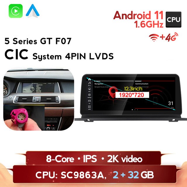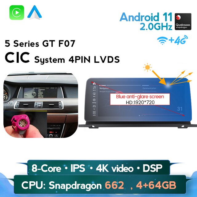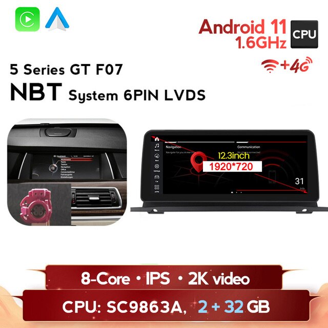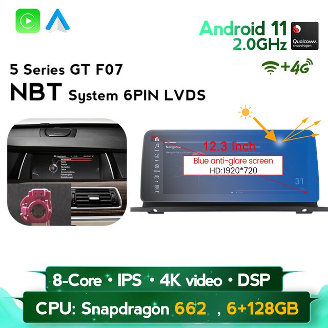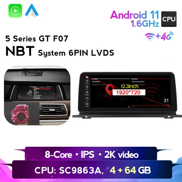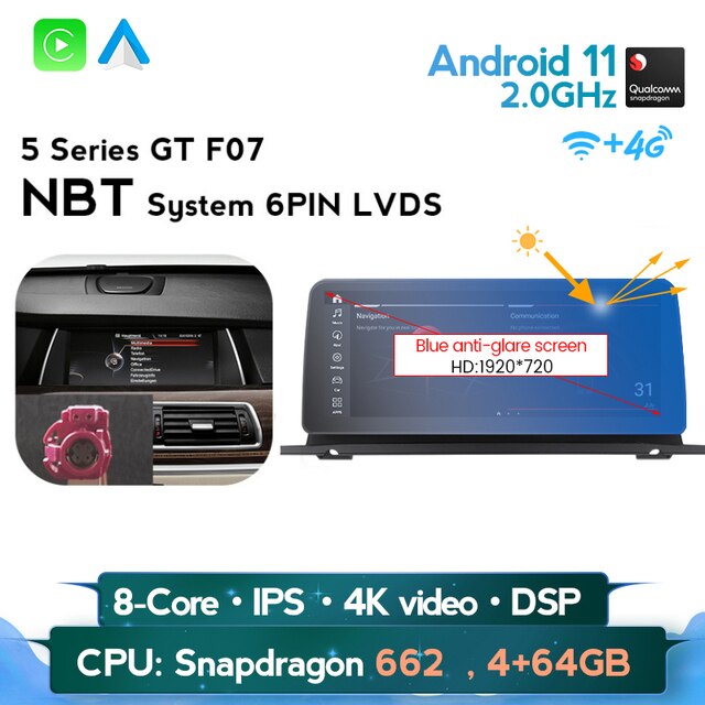 omnitek Android 11 BT 5.0 4G LTE WIFI DSP 8 Core GPS For BMW 5 Series GT F07 2009-2016 CIC NBT system Car DVD Multimedia Player