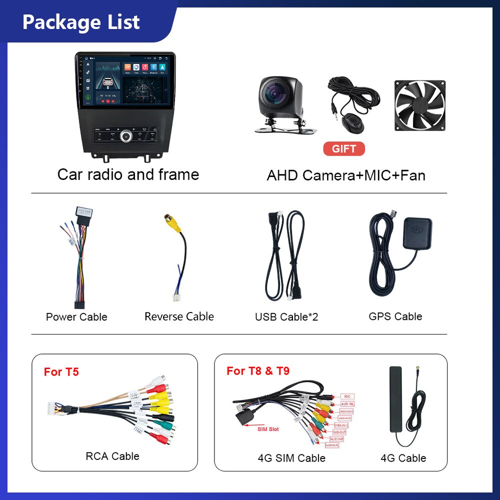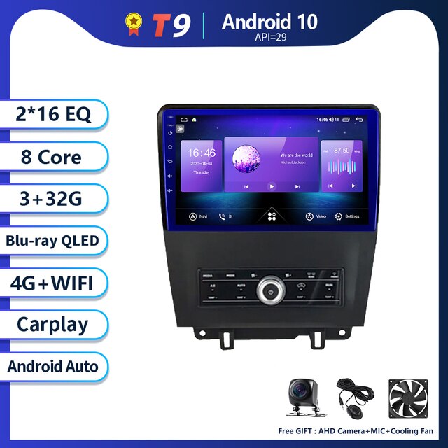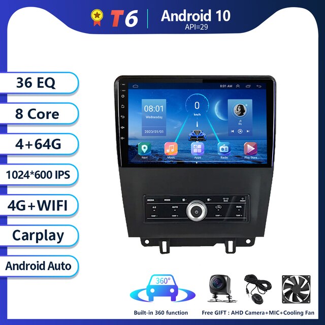 OMNITEK 8G 256G For Ford Mustang 2010-2014 Car Radio Android 10 Auto Carplay Multimedia Player Navigation GPS Stereo 2din DVD HU