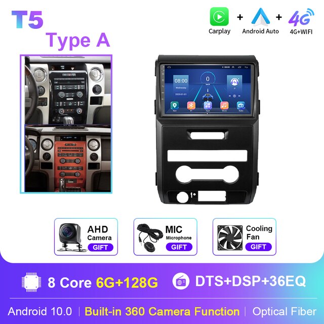 OmnitekT5 Android 10 For Ford F150 P415 Raptor 2008-2014 Car Radio 4G WIFI Video Player Carplay GPS Navigation 2 Din No DVD