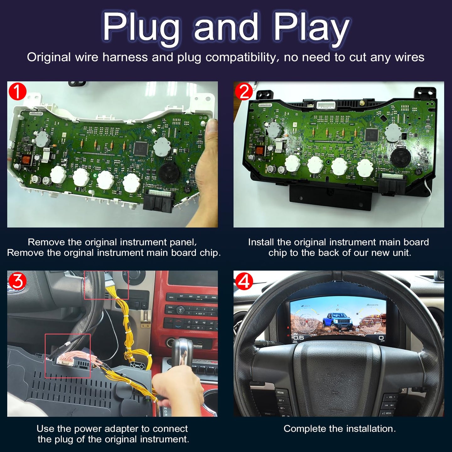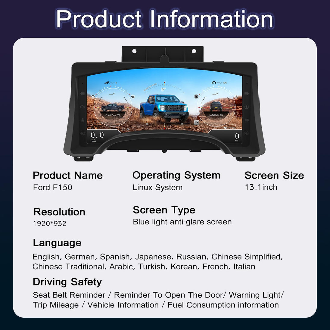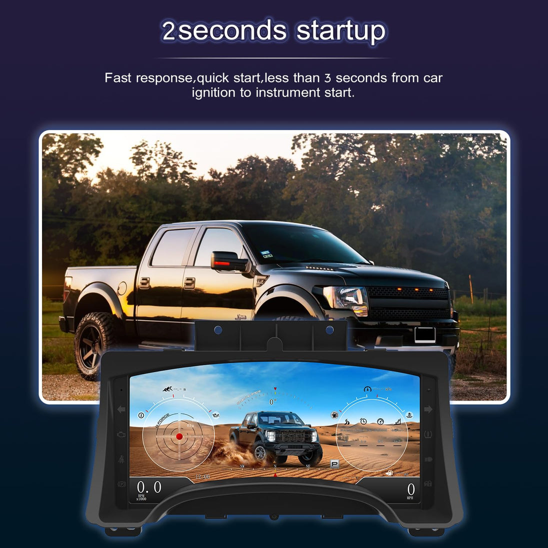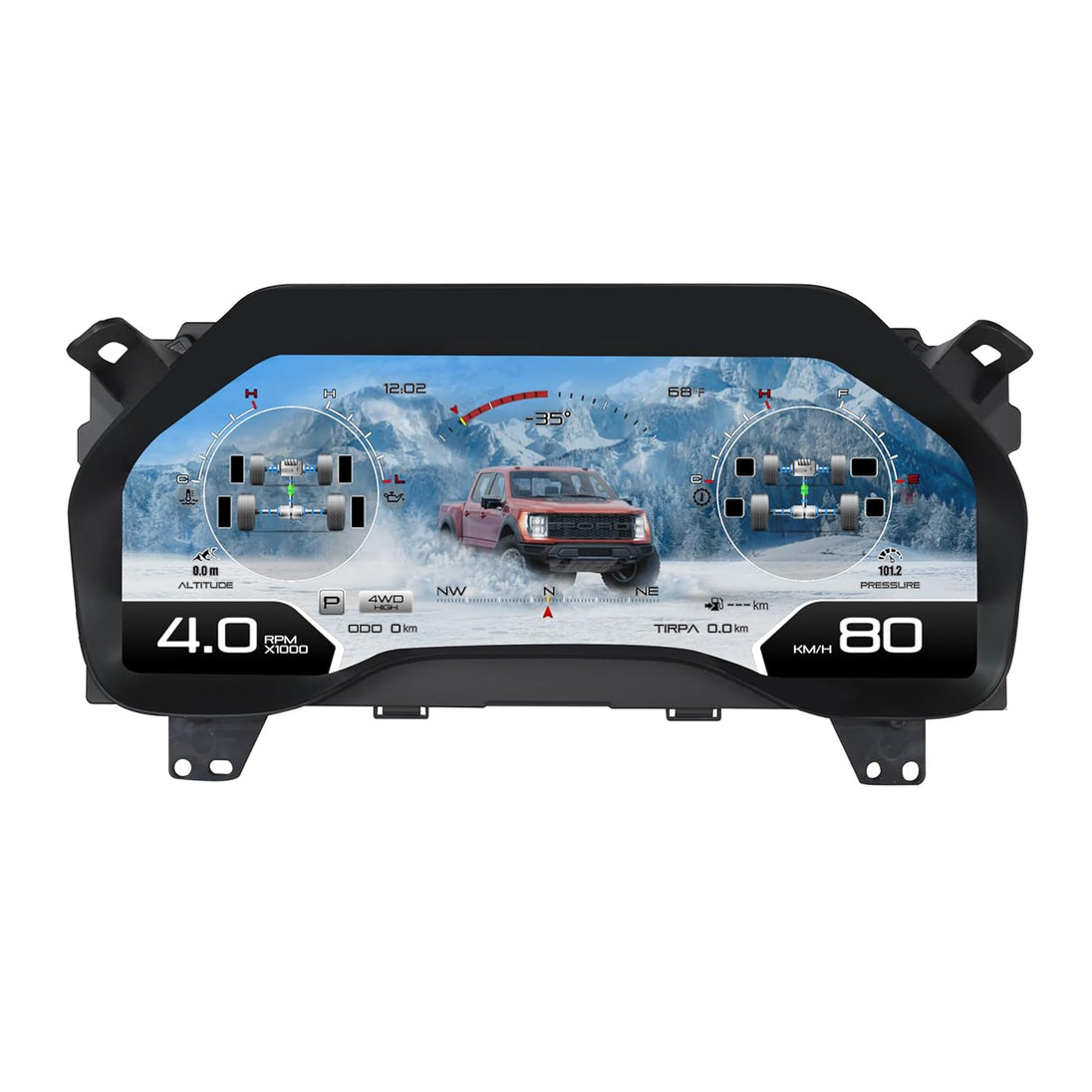【Original Car Date display】For Ford F150 instrument cluster display can display original date, altitude,fuel comsumption, original car tire pressure display, Fault code indication, boday tilt angle, Trip mileage, Water Temperature, tachometer, 4x4 driver can display dynamic effects, etc