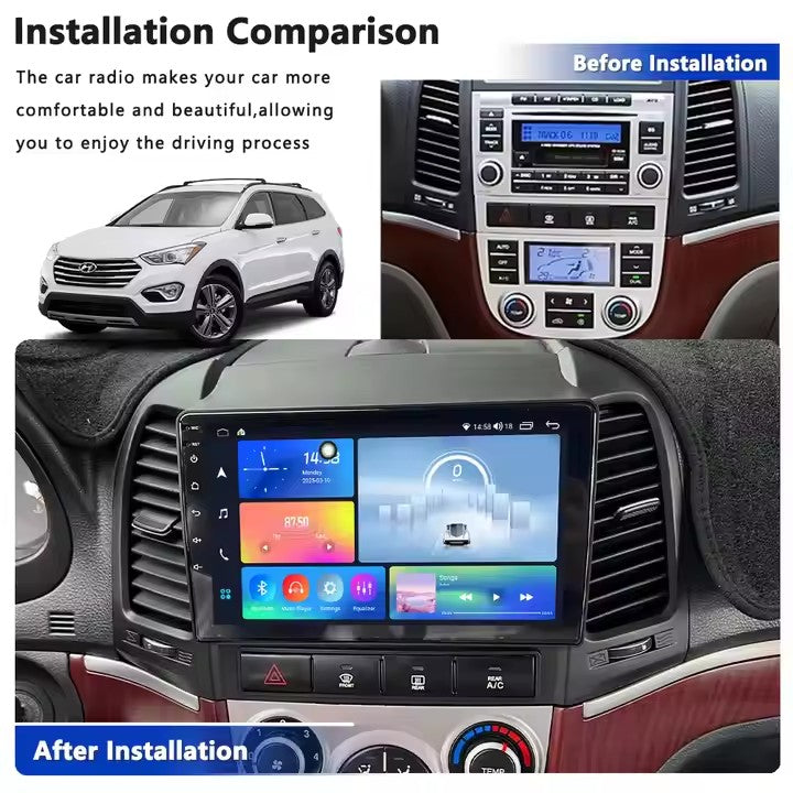 OMNITEK 2 Din 9 Inch Dashboard Frame Car GPS Navigation Stereo Hyundai Santa Fe LHD System