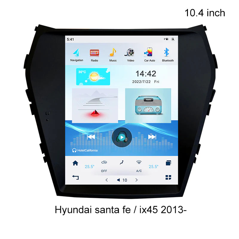 Discover a new way to enjoy your drive with the 10.4 Inch Car Radio for Hyundai Santa Fe / Ix45 2013- Tesla Vertical Screen Bluetooth GPS Navigation Stereo Head Unit. This state-of-the-art device features a 10.4 inch vertical screen, Bluetooth connectivity, and advanced GPS navigation capabilities. Get ready to make every journey an adventure!