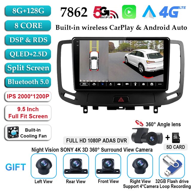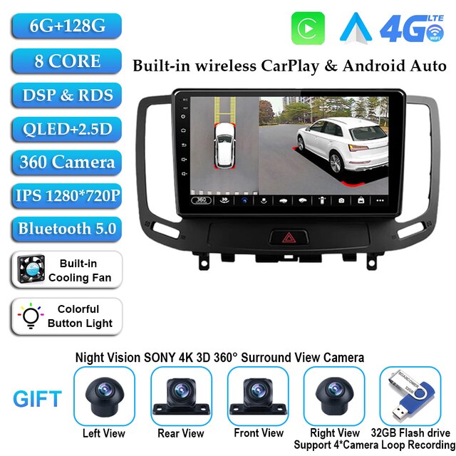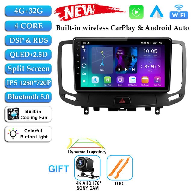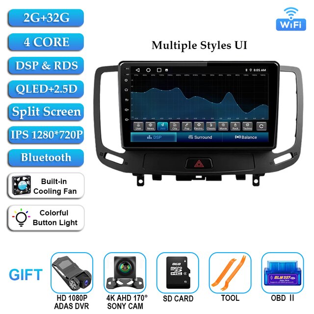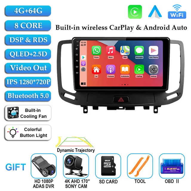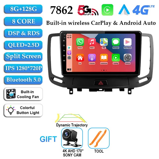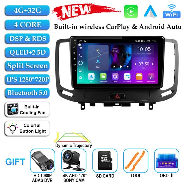 OMNITEK Android 12 For Nissan Voor Infiniti G4 G25 G35 G37 2006 - 2013 Car Radio Video Player GPS Navigation Multimedia Carplay 2Din DVD