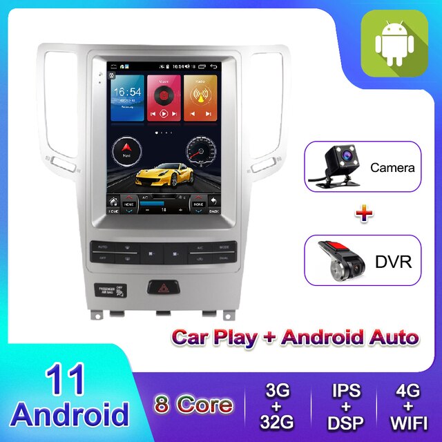 Omnitek Vertical Screen Tesla Style Android 11 Car Radio For Infiniti GX G37 G25 G35 2008-2015 Auto GPS Navigation DVD Player