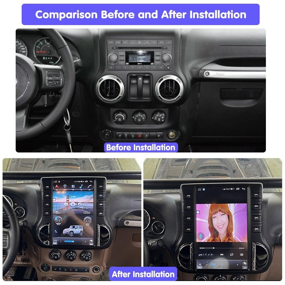 Omnitek 12.3 inch Screen Android 13 Auto Carplay Car Radio For Jeep Wrangler 3 JK 2010-2018 Multimedia Video Player Navigation GPS