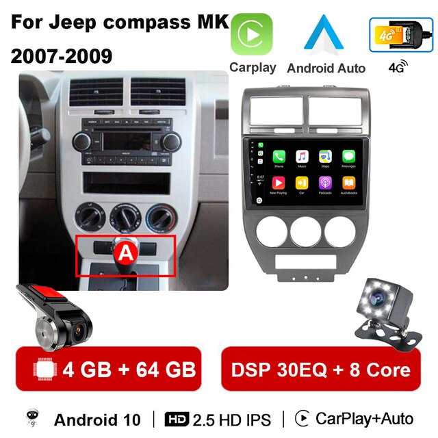 For Dodge Caliber Jeep Compass 1 MK Patriot 2006 - 2010 Car Radio Multimedia Blu-ray QLED Navigation GPS No 2 Din DVD