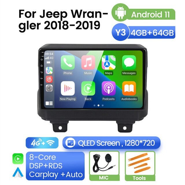 For Jeep Wrangler 4 JL 2018 - 2019 Car Radio Multimedia Video Player Navigation stereo GPS Android 11 No 2din 2 din dvd carplay