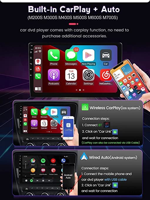 - CARPLAY & ANDROID AUTO: This bluetooth car stereo compatible with Carplay and Android Auto. Simply connect the phone via USB cable. You can access map navigation, phone contacts, email, notification, music, video and more when driving. You can also use voice assistant for hands-free control and safer driving. Note: the car stereo mp5 player is not a GPS unit, it gets GPS navigation function by connecting to the phone.