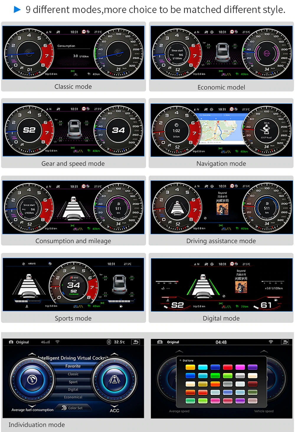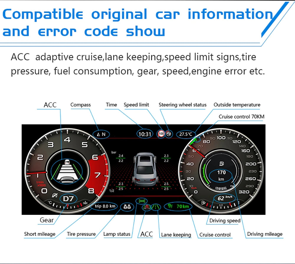 4.Touch control of auto/manual A/C. Display car info like RPM, speed.