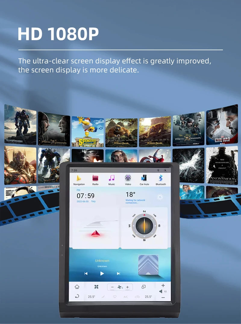 12.1 inch Android 11.0 HD digital touch screen 1. Android 11.0 operating system 2. Support 1080P+ support lossless music 3. Support steering wheel control (if your car has it) 4. Support Phone Link (AirPlay, Miracast) 5. Output: 4x50W max Power output/5.1 channel lossless audio output 6.Audio Frequency: 7 EQ balanced audio processing technology 7.OSD language: English/Russian/French/German/Spanish/Italian/Arabic/Portuguese/Turkish/Thai/ More than 20 languages such as Polish/Hebrew 8. Automatically display rear view camera image when reversing 9. Support media card/GPS card/USB memory stick up to 32GB SD card and 1T hard disk 10. Audio model: Classic/Rock/ Pop/Hall Cinema 11. Music spectrum: display music spectrum when playing audio 12. Audio format: MP3/ WMA/ FLAC/ APE/ ACC etc. 13. Picture format: JPG/ BMP/ GIF/ PNG etc. 14. Video format: H264/ MP4/ AVI/ RMVB/ FLV/ MKV/ MOV, etc. 15.WiFi: Built-in WiFi and antenna 16.Car Door Info: Display the status of the door switch (the original car has this function) 17.Rotating Speed: Display the speed on the screen 18. Running Speed: Display the running speed or engine on the screen 19. Rear view camera: For cars without original camera 20. Support the latest phonebook search, you can search and find contacts in the downloaded phonebook, just enter the name The first letter, you will find some related names, then you can choose the suitable one 21.Radio Tuner with RDS, 30 Preset Radio Stations (FM: 3*6, AM: 2*6) 22.USB port and Micro SD slot, support USB stick and memory card up to 32GB 23.Parking Sensor: Suitable for cars without original parking sensor 24.TPMS: USB TPMS for Android car GPS 25.Support steering wheel control function Support steering wheel control function
