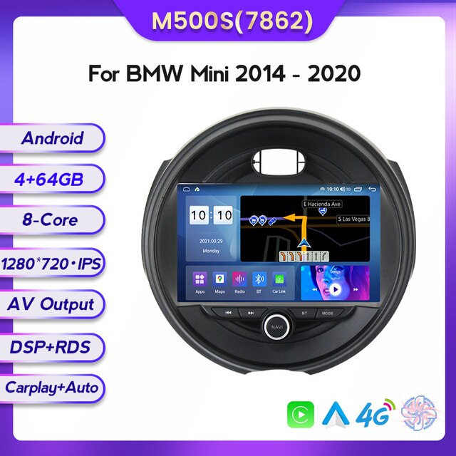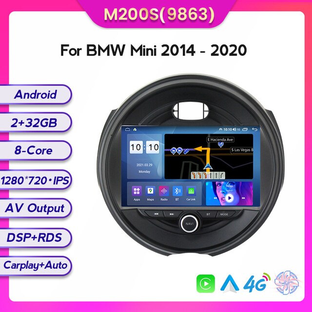 OMNITEK 4GB Android 11 Car GPS Navigation DVD Player For 2014-2020 BMW Mini Cooper Support Radio 1080P Video Support Rear Camera DAB SWC