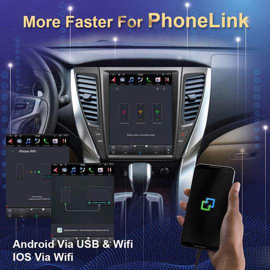 Vendor: OMNITEK-CAR STEREO Omnitek 12.1 inch Tesla Vertical screen car gps multimedia system car audio radio player For Mitsubishi L200 2015-2018 Main features: Operating system: Android10.0 Screen size: 12.1 inch high-definition digital screen Screen resolution 1024*600 Memory: 1GB+ 16GB/2GB+ 32GB/4GB+64GB (optional) Processor: 4-core/8-core output power : 4x50W FM Frequency Range: 87.5-108 MHz, 18 radio stations can be...Regular price From $550.00