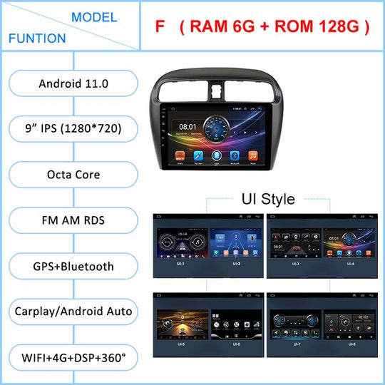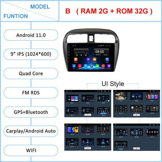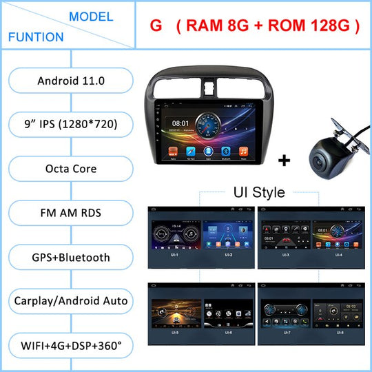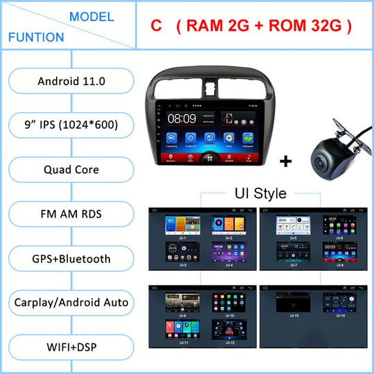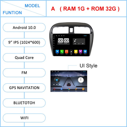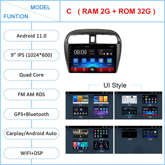 Vendor: OMNITEK-CAR STEREO Omnitek android car radio for Mitsubishi mirage attrage 2012 2018 2019 space star 2014 gps navigation dvd Stereo multimedia tuning Brand Name: OmnitekOrigin: Mainland ChinaDin: Double DinDisplay Size: 9"RAM: 6GResolution: 1024*600For Vehicle Brands/Model: MitsubishiMitsubishi Model: MIRAGEMirage-Year: 2014,2015ROM: 128GOSD Language: Chinese (Simplified),Chinese (Traditional),Russian,French,Korean,Thai,Hebrew,EnglishOut Power: 4*50wMax External Memory: 128GDigital Media Format: Mp3,Mp4,WMA,JPEGMaterial Type: composite materialTF/Micro SD Slot: 1Special Feature:...Regular price From $109.00