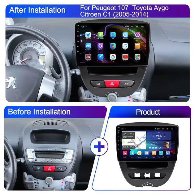 Omnitek Android12 Car Raido Multimedia For Peugeot 107 Toyota Aygo Citroen C1 2005-2014 GPS 2din Stereo CarPlay Auto
