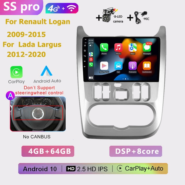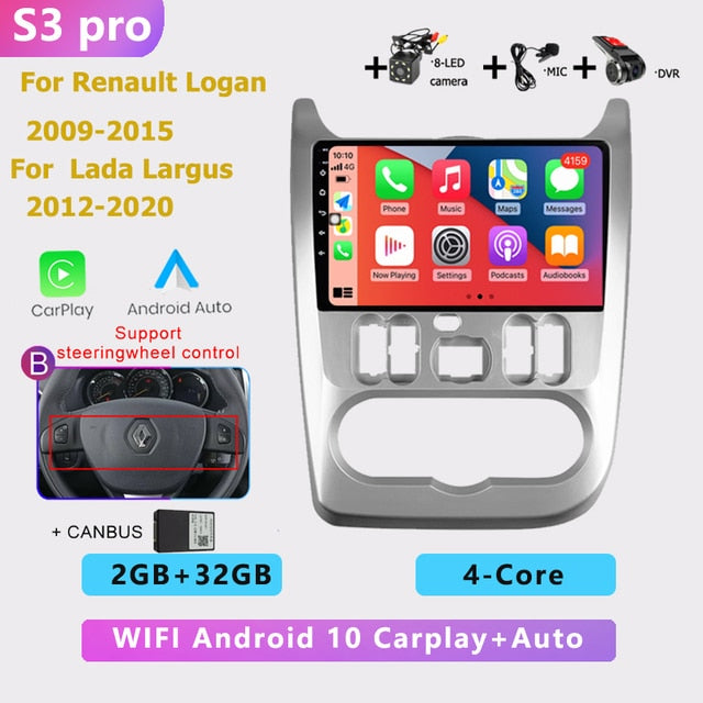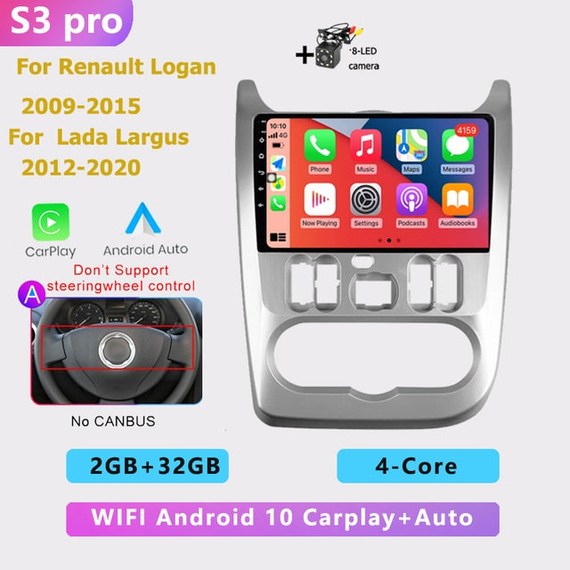 OMNITEK 2 din android AUTO Car radio multimedia player Carplay GPS navigation No DVD for Renault Logan 1 Sandero Dacia Duster 2009-2015