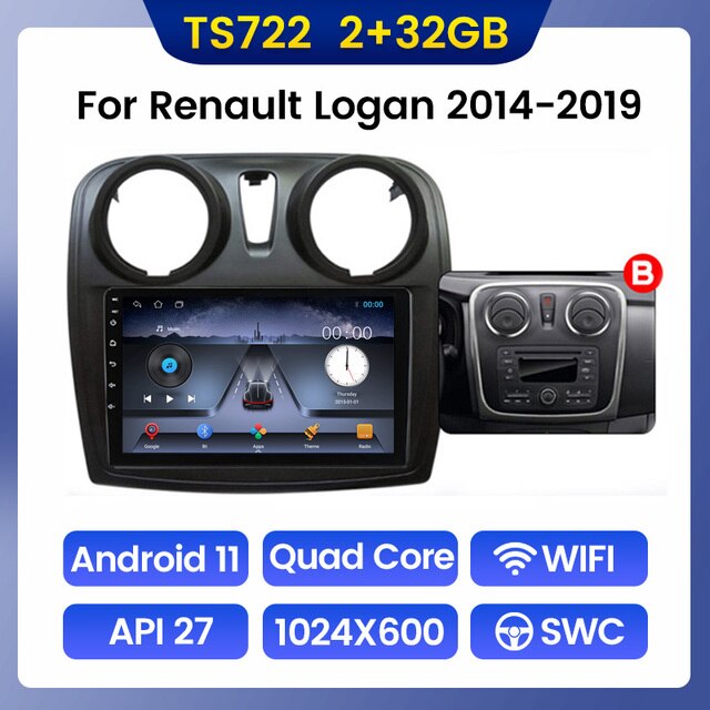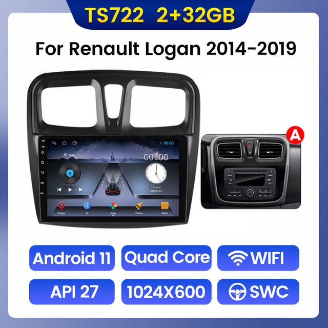 OMNITEK 2 DIN Car AutoRadio Android 11 IPS Touchscreen Multimedia Player for Renault Logan I Sandero Lada Lergus Dacia 2014-2019 No DVD