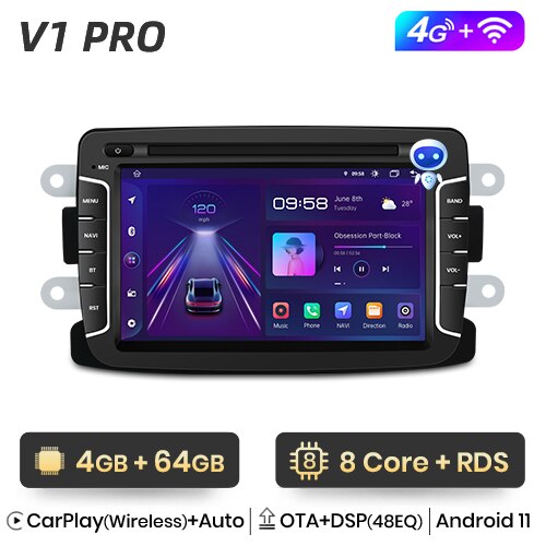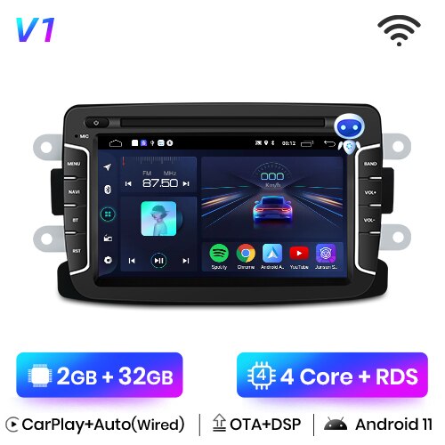 OMNITEK Android Autoradio for Renault Dacia Car Radio Multimedia Carplay Bluetooth 7 Inch Touch Screen DVD Player