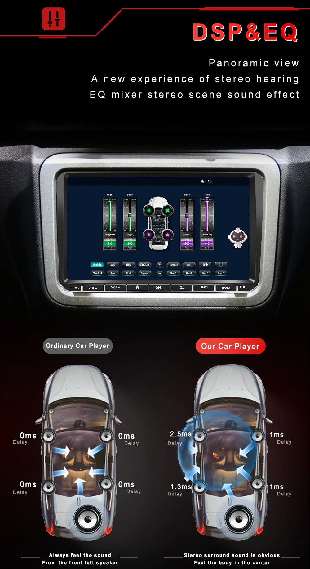 ● DSP: Car dsp tuning software, using DSP tuning technology, you can adjust the frequency, AE, 36-band equalization, 10-band equalization, and sound type selection on the app to make up for the lack of the original car speakers and obtain better lossless sound quality. Enjoying music in the car is the first choice for audiophiles who are looking for high sound quality.
