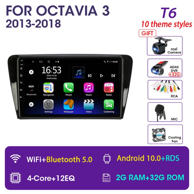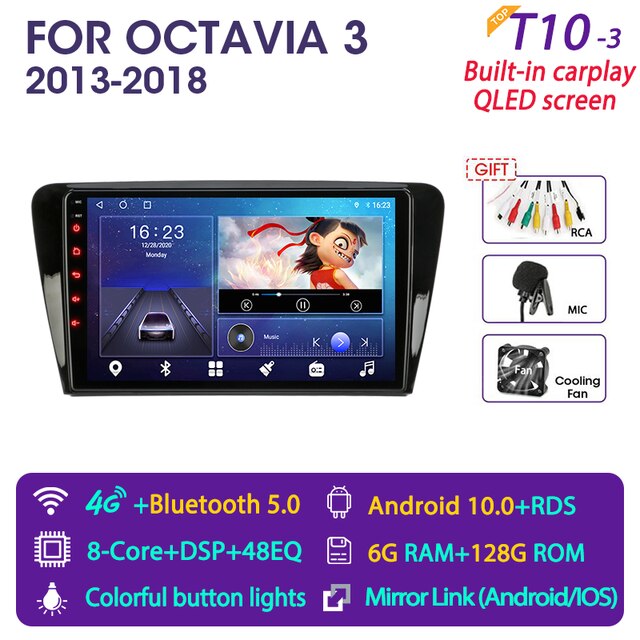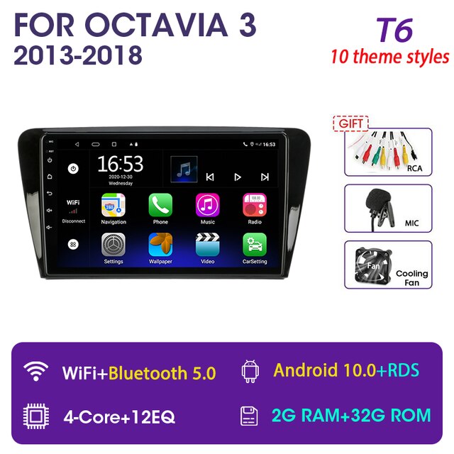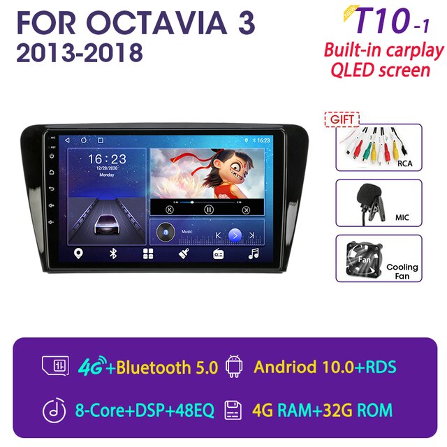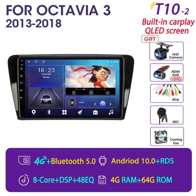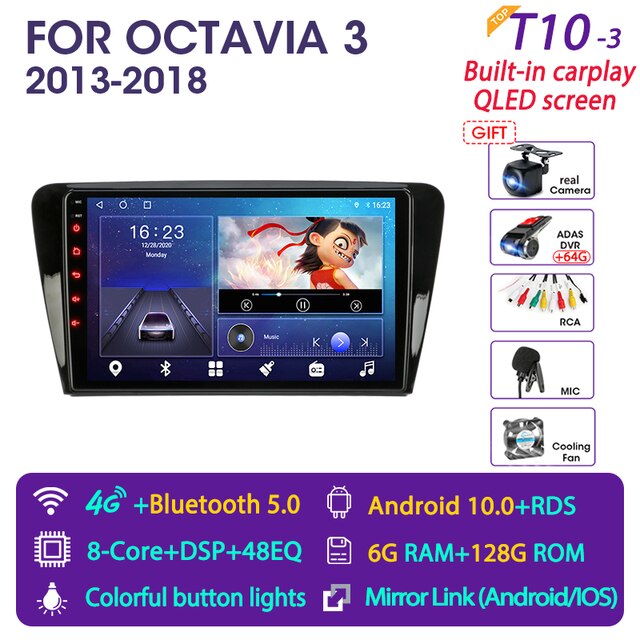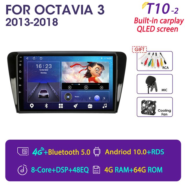 Omnitek Android 10 2din Car Radio For SKODA Octavia A7 2013 - 2018 Multimedia Video Player Navigation GPS Carplay Stereo DVD Head unit
