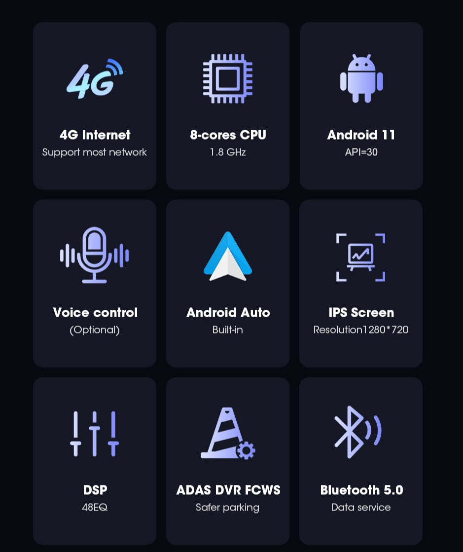 Special Feature: Built-In Speaker/Microphone,Wifi Function,Support Steering Wheel Control,Support 4G Network