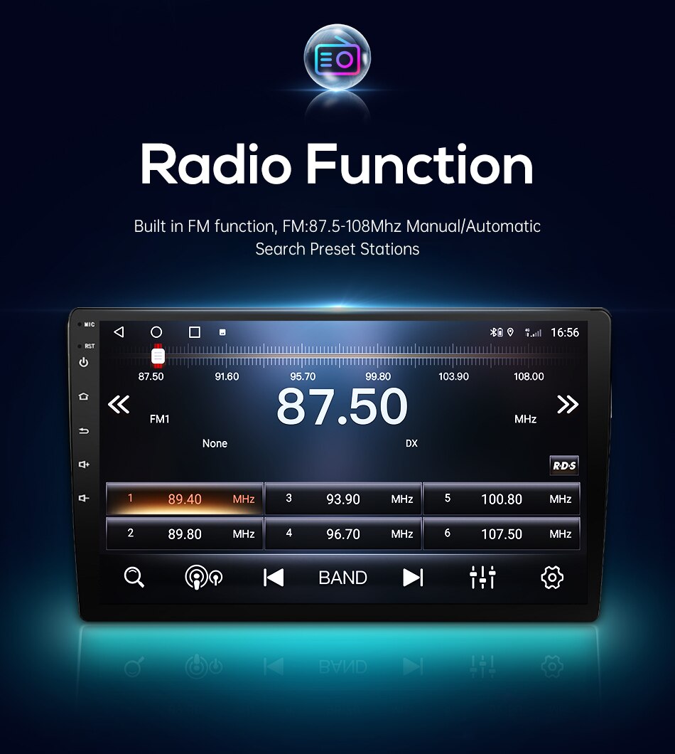 Main features: Operating system: Android10.0 Screen size: 9/10 inch high-definition digital screen Screen resolution 1024*600 Memory: 1GB+ 16GB/2GB+ 32GB/4GB+64GB (optional) Processor: 4-core/8-core output power : 4x50W FM Frequency Range: 87.5-108 MHz, 18 radio stations can be preset GPS Navigation: Google Maps Online...