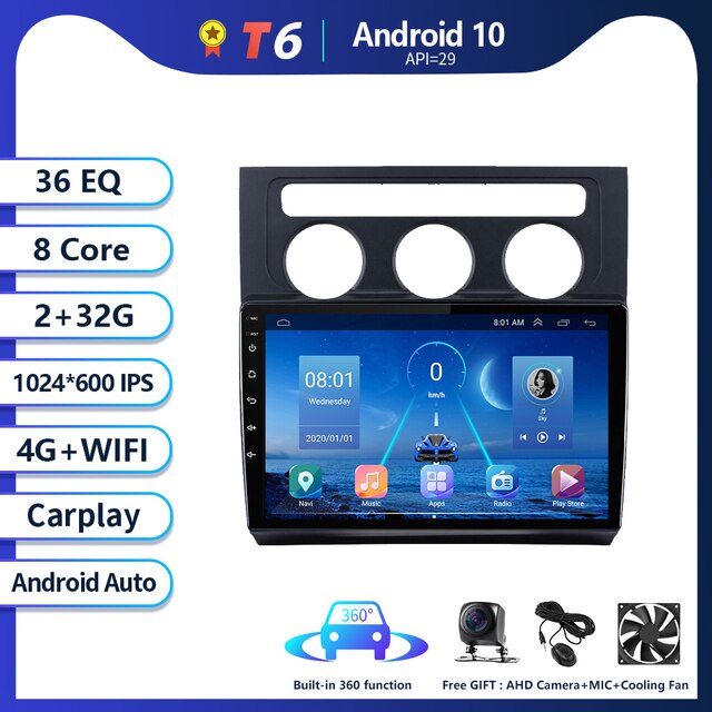 OMNITEK T8 8G 256G For Volkswagen VW Touran 1 2003 - 2010 Car Radio Multimedia Video Player Navigation GPS Android Auto No 2din DVD
