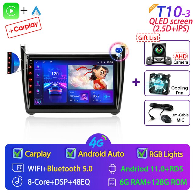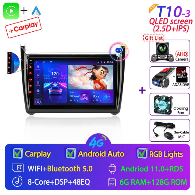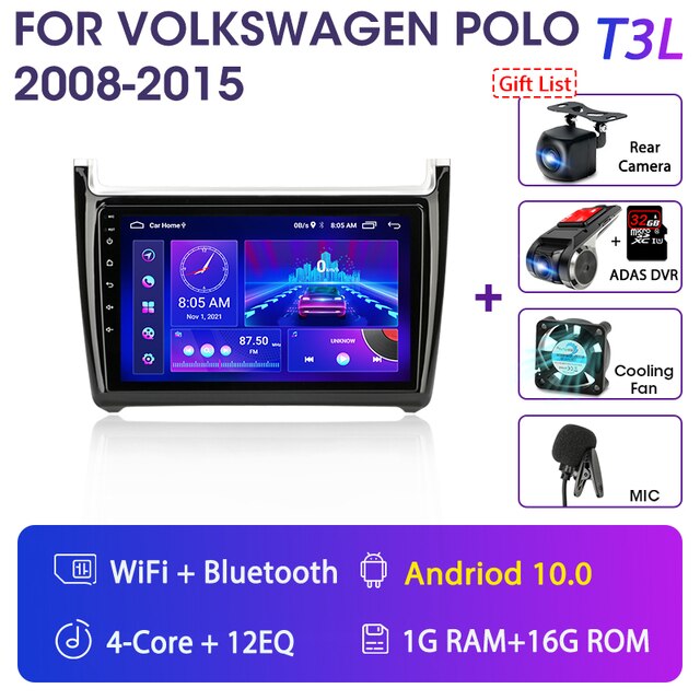 Omnitek Android 11.0 Car Radio For Volkswagen POLO 2008-2015 Multimedia Video Player 2Din 4G GPS Navigation Carplay DVD Head unit