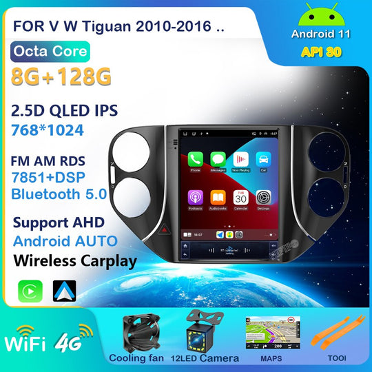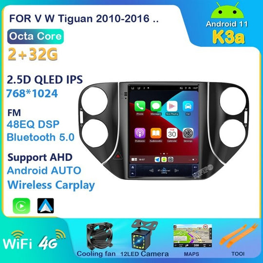 OMNITEK DSP Android 11 Tesla Vetical Screen Car Radio For VW Volkswagen Tiguan 2010-2016 Multimedia Navigation GPS Stereo 2 DIN no DVD