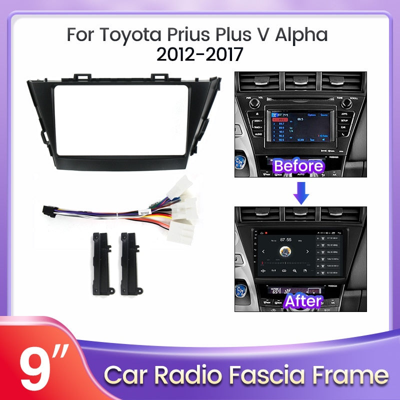 9" Car Frame Fascia Adapter for Toyota Prius Plus V Alpha 2012-2017 Installation 2din DVD GPS Stereo Mp5 Plastic Dash Mount Kit