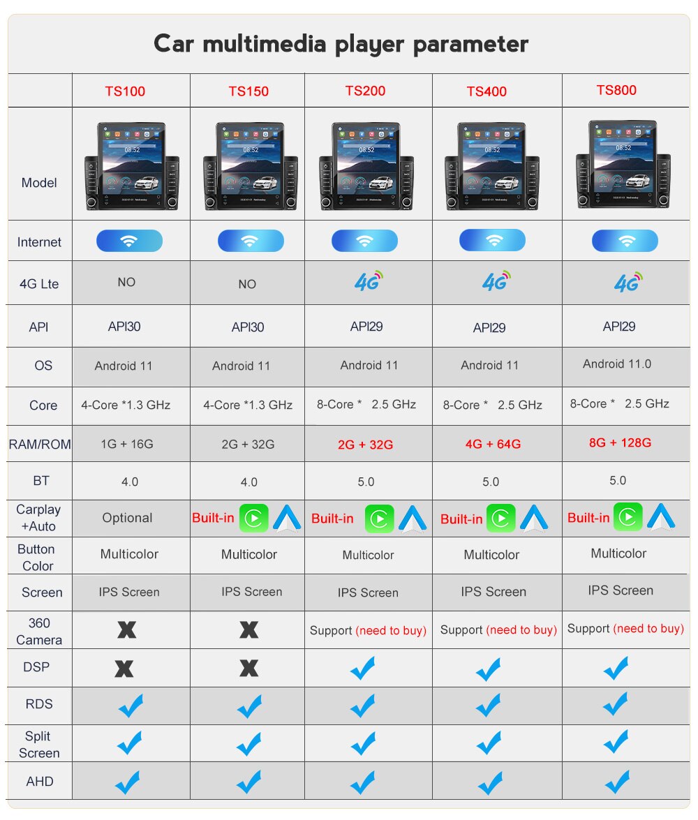 TS150 TS200 TS400 TS800: Carplay + Android auto