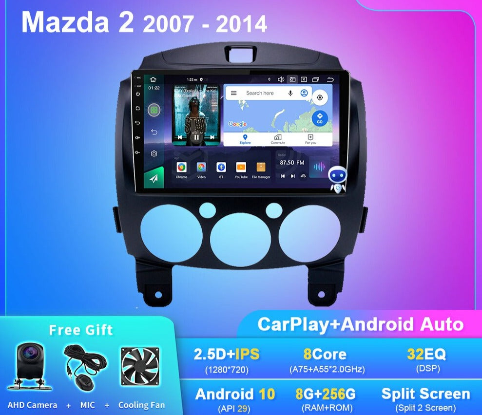 Omnitek Android 10 Car Radio For Mazda 2 2007-2014 Multimedia Video Player Navigation GPS No 2 Din DVD Head Unit Carplay Auto BT