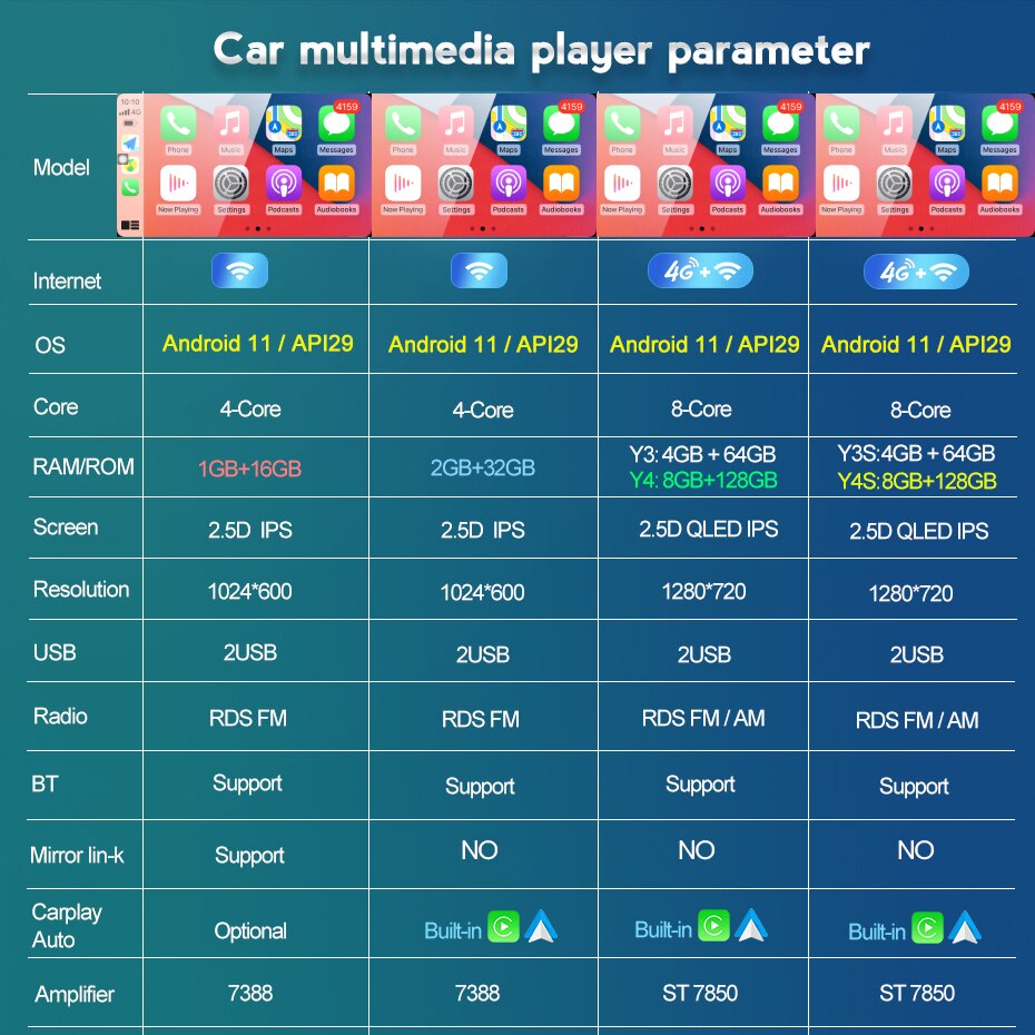Built-in wireless Carplay Android Auto: only 1+16G cannot support it,others can support it