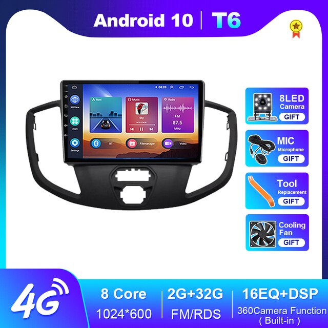 OMNITEK For Ford TRANSIT 2015 2016 2017 2018 Car Radio Android 10 Auto DSP Carplay 4G WIFI GPS Navigation No DVD Player 2 Din