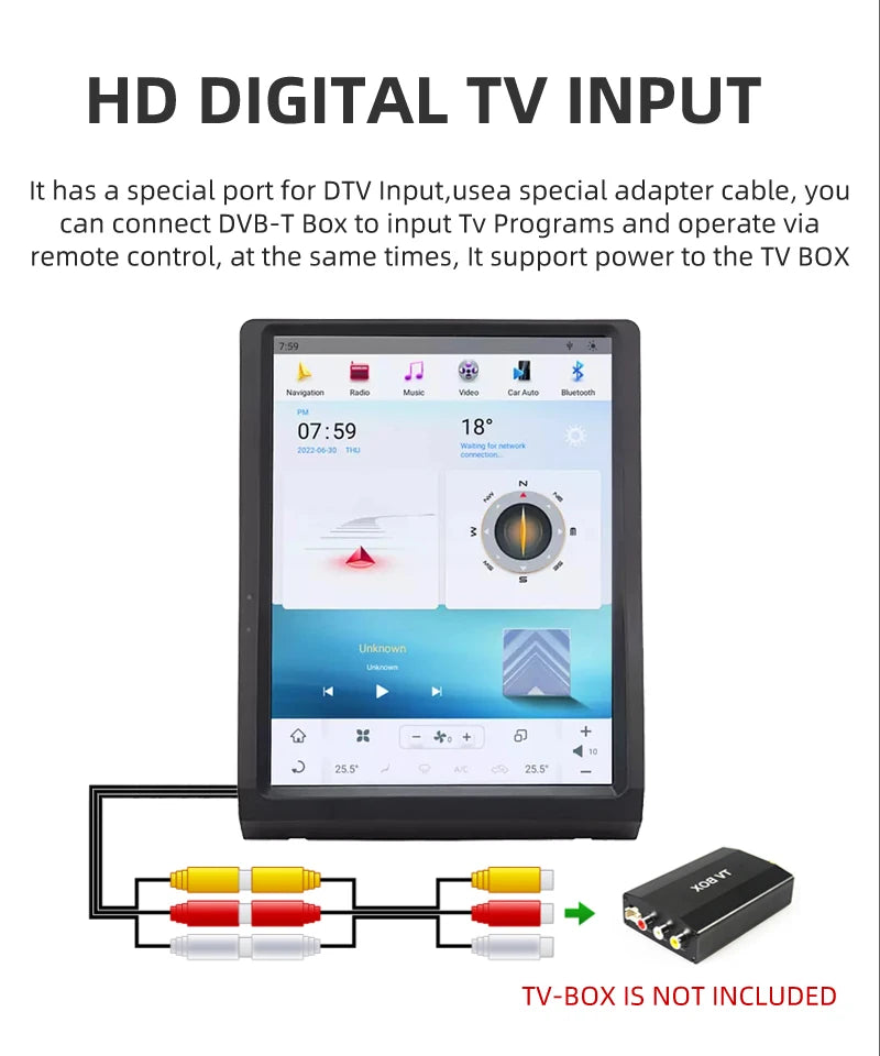 12.1 inch Android 11.0 HD digital touch screen 1. Android 11.0 operating system 2. Support 1080P+ support lossless music 3. Support steering wheel control (if your car has it) 4. Support Phone Link (AirPlay, Miracast) 5. Output: 4x50W max Power output/5.1 channel lossless audio output 6.Audio Frequency: 7 EQ balanced audio processing technology 7.OSD language: English/Russian/French/German/Spanish/Italian/Arabic/Portuguese/Turkish/Thai/ More than 20 languages such as Polish/Hebrew 8. Automatically display rear view camera image when reversing 9. Support media card/GPS card/USB memory stick up to 32GB SD card and 1T hard disk 10. Audio model: Classic/Rock/ Pop/Hall Cinema 11. toyota auris 2006 2007 2008 2009 2010 2011 car radio andro Music spectrum: display music spectrum when playing audio 12. Audio format: MP3/ WMA/ FLAC/ APE/ ACC etc. 13. Picture format: JPG/ BMP/ GIF/ PNG etc. 14. toyota auris 2006 2007 2008 2009 2010 2011 car radio andro Video format: H264/ MP4/ AVI/ RMVB/ FLV/ MKV/ MOV, etc. 15.WiFi: Built-in WiFi and antenna 16.Car Door Info: Display the status of the door switch (the original car has this function) 17.Rotating Speed: Display the speed on the screen 18. Running Speed: Display the running speed or engine on the screen 19. Rear view camera: For cars without original camera 20. Support the latest phonebook search, you can search and find contacts in the downloaded phonebook, just enter the name The first letter, you will find some related names, then you can choose the suitable one 21.Radio Tuner with RDS, 30 Preset Radio Stations (FM: 3*6, AM: 2*6) 22.USB port and Micro SD slot, support USB stick and memory card up to 32GB 23.Parking Sensor: Suitable for cars without original parking sensor 24.TPMS: USB TPMS for Android car GPS 25.Support steering wheel control function Support steering wheel control function