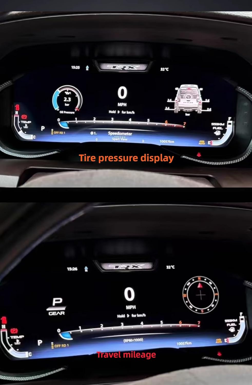 - 【Function Parameters】support orginal Miles/KM/Tyre Presure/Oil/water tempreture,oil pressure,fule,etc.